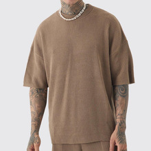 2025跨境欧美早春纯色运动男士套装 时尚休闲短袖长裤外贸两件套