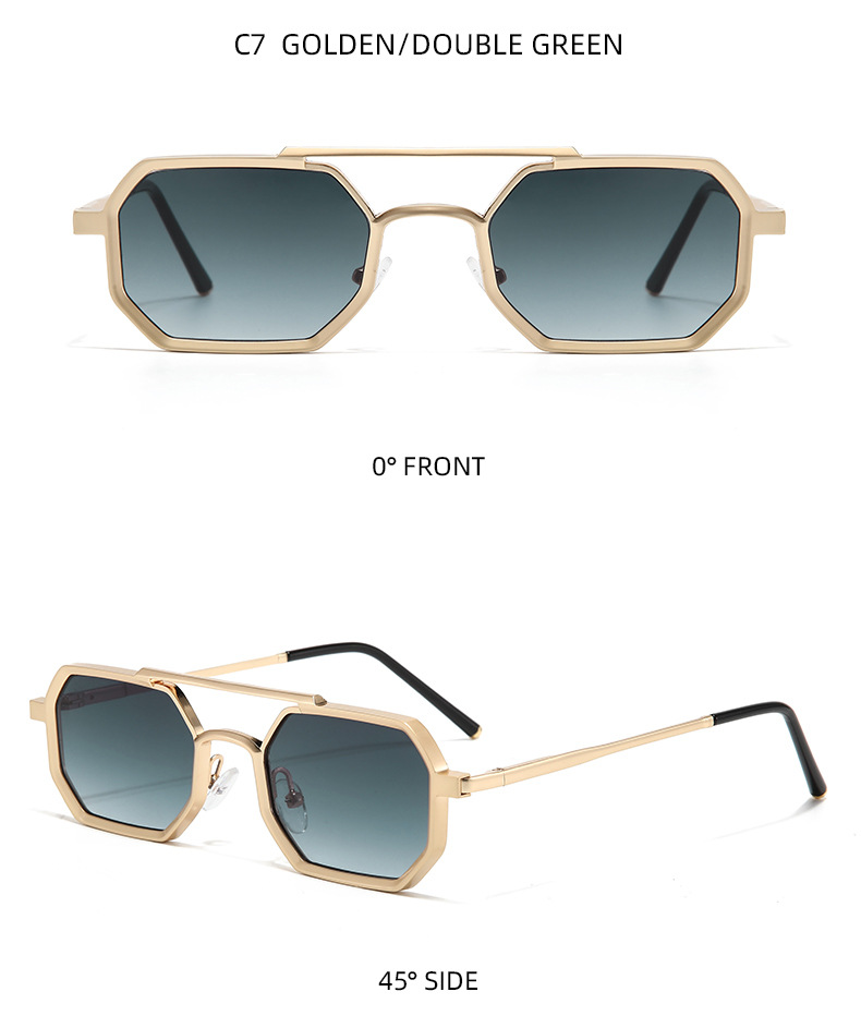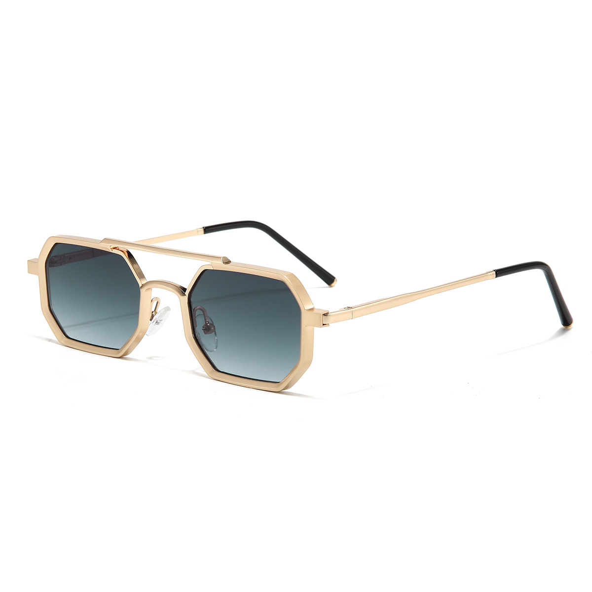 • 골드 프레임 그라디언트 그린 다각형 선글라스