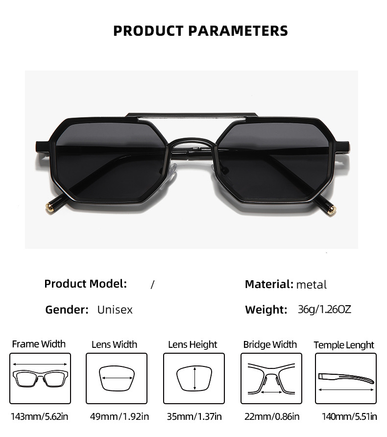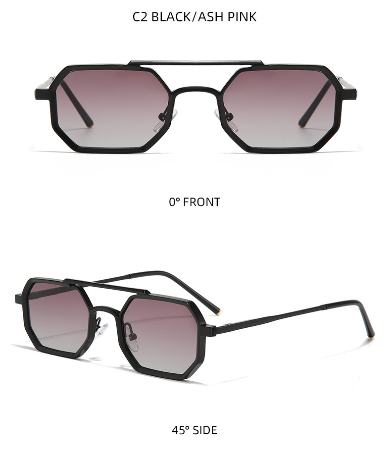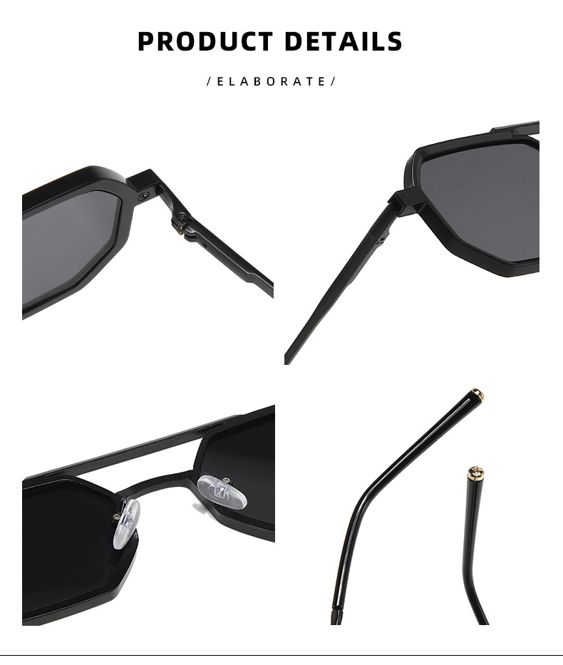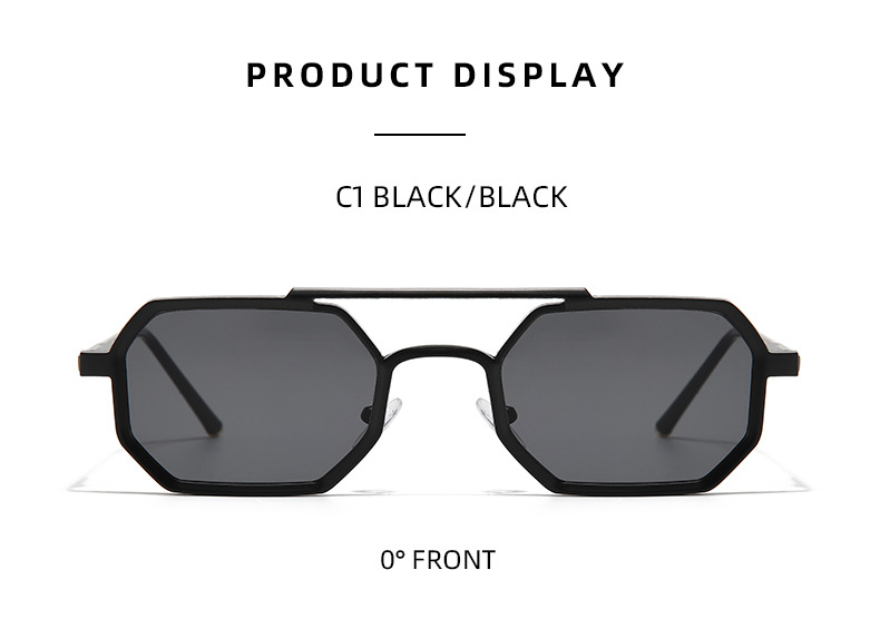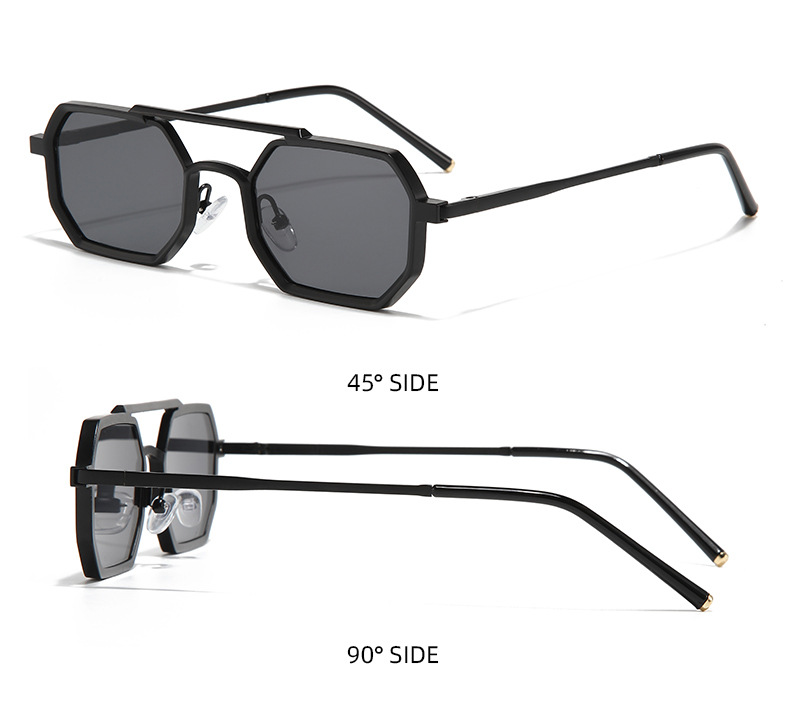 • 블랙 프레임 블랙 그레이 다각형 선글라스