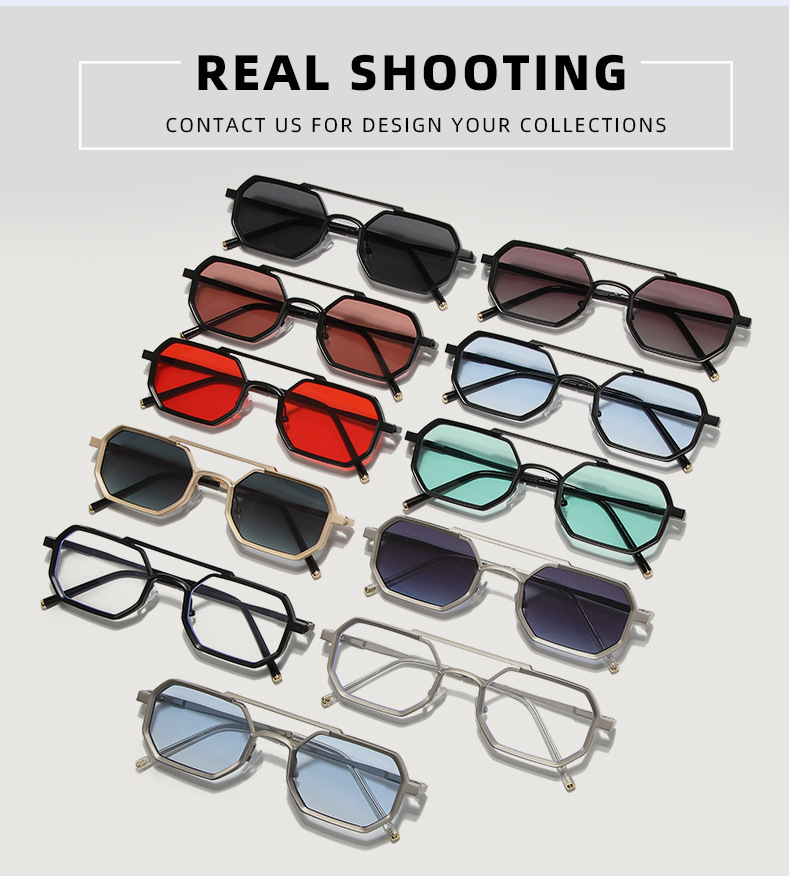 대외 무역 금속 구리 작은 프레임 다각형 선글라스 여성 남성 유니버설 유럽과 미국 레트로 더블 빔 비행가 선글라스스토어 가기