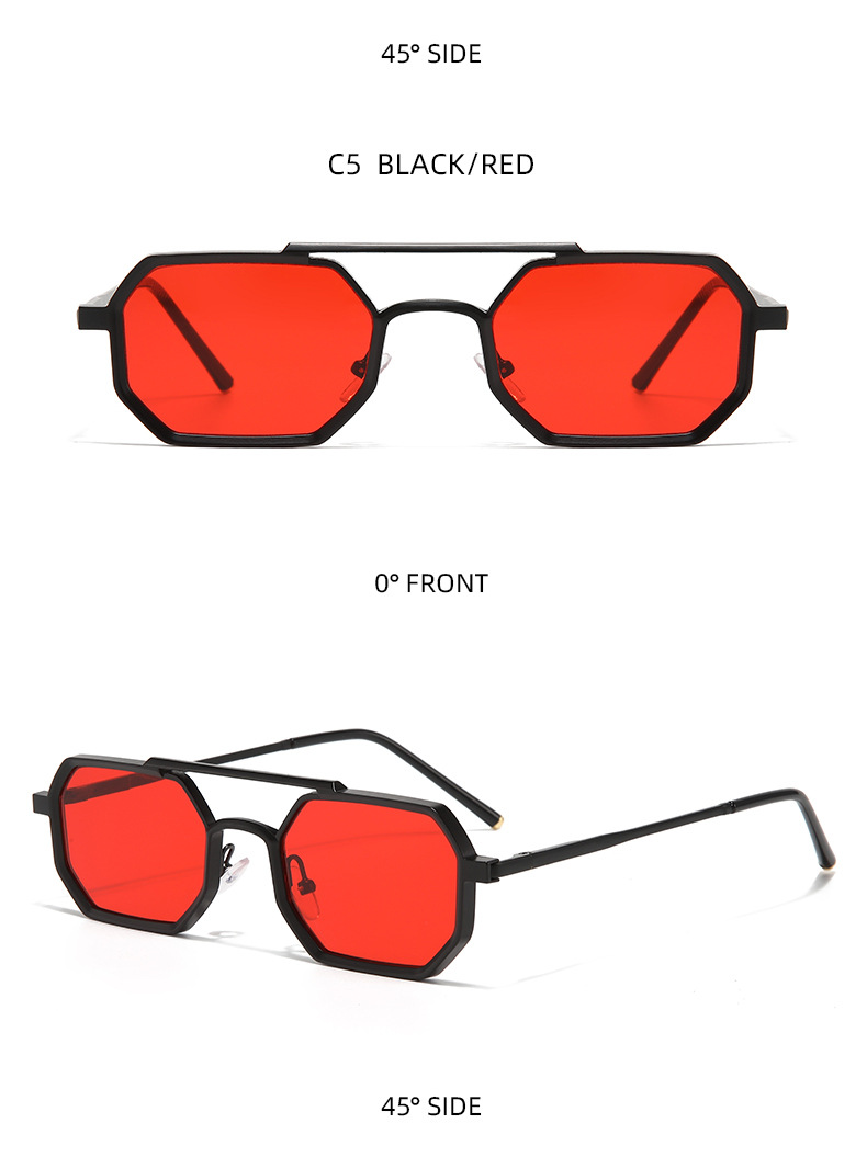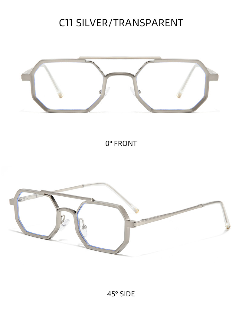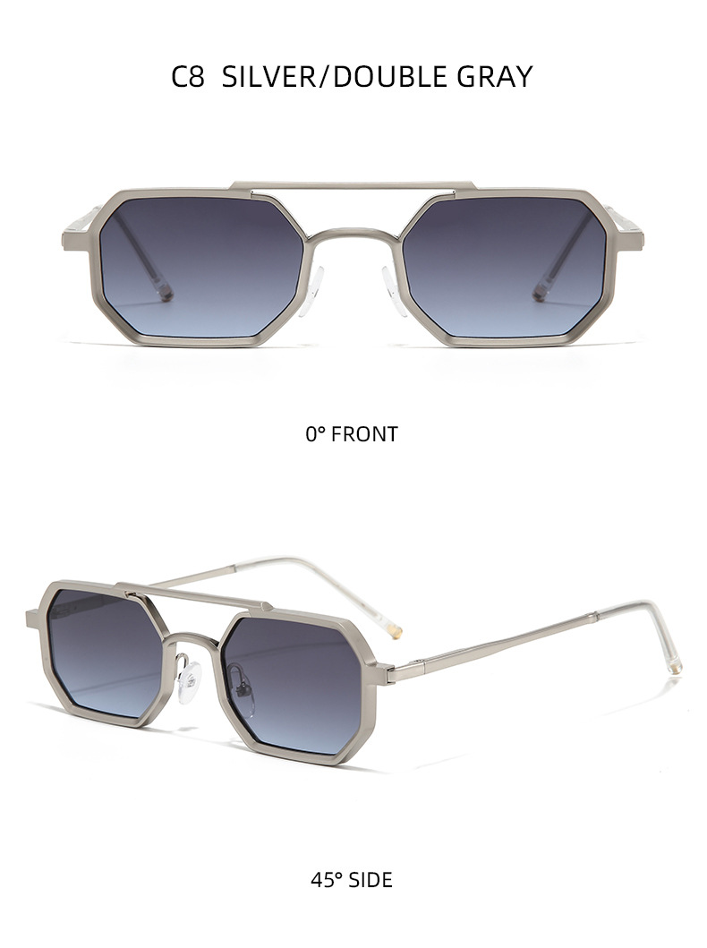 • 실버 프레임 그라디언트 그레이 다각형 선글라스