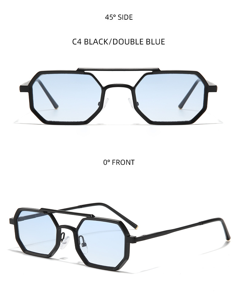• 블랙 프레임 그라디언트 블루 다각형 선글라스