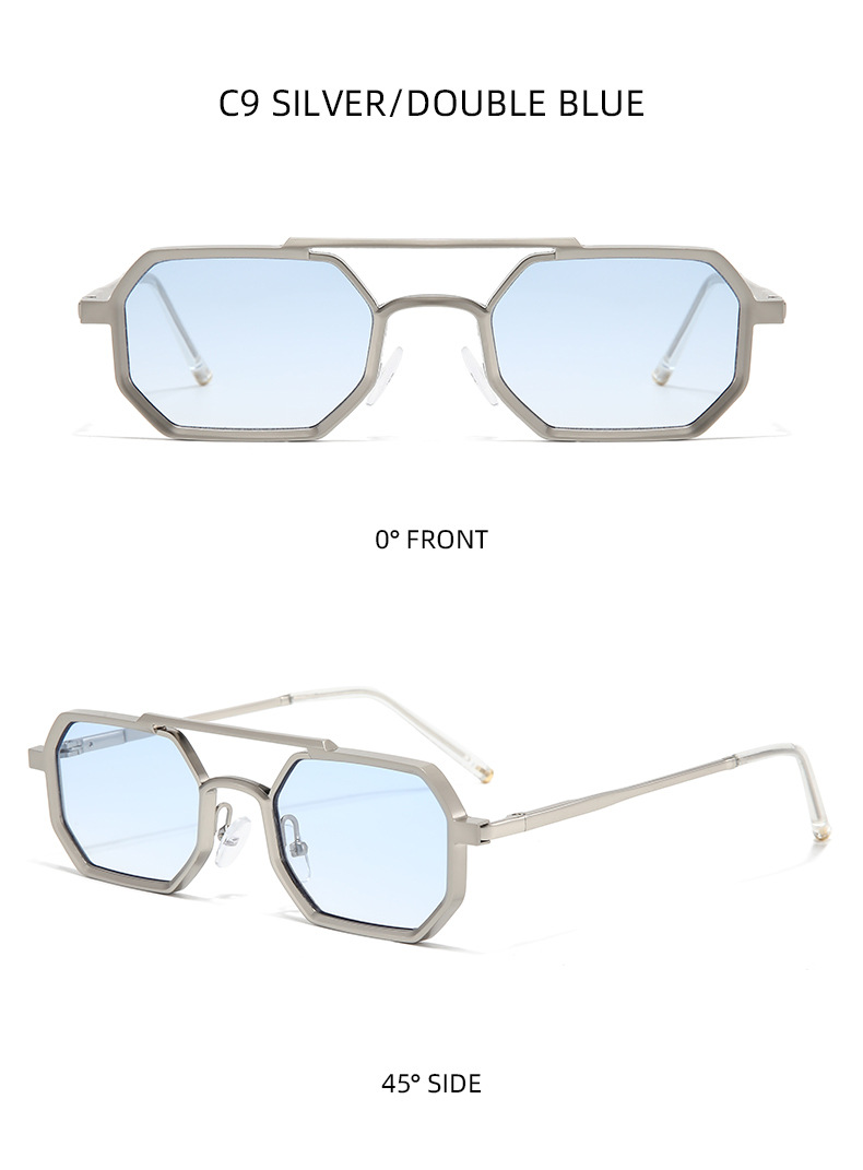 • 실버 프레임 그라디언트 블루 다각형 선글라스