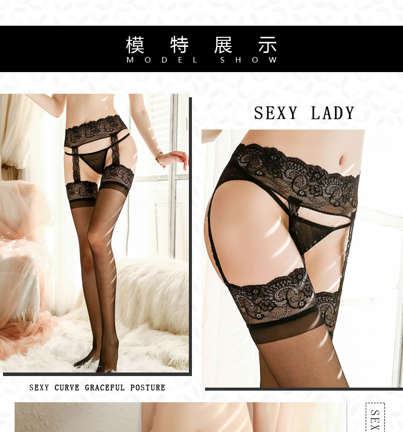 스티치 레이스 가장자리 슬링 스타킹 오픈 가랑이 무료 양말 다리 모양 섹시한 높은 탄성 양말 중공 슬링 양말 블랙 실크