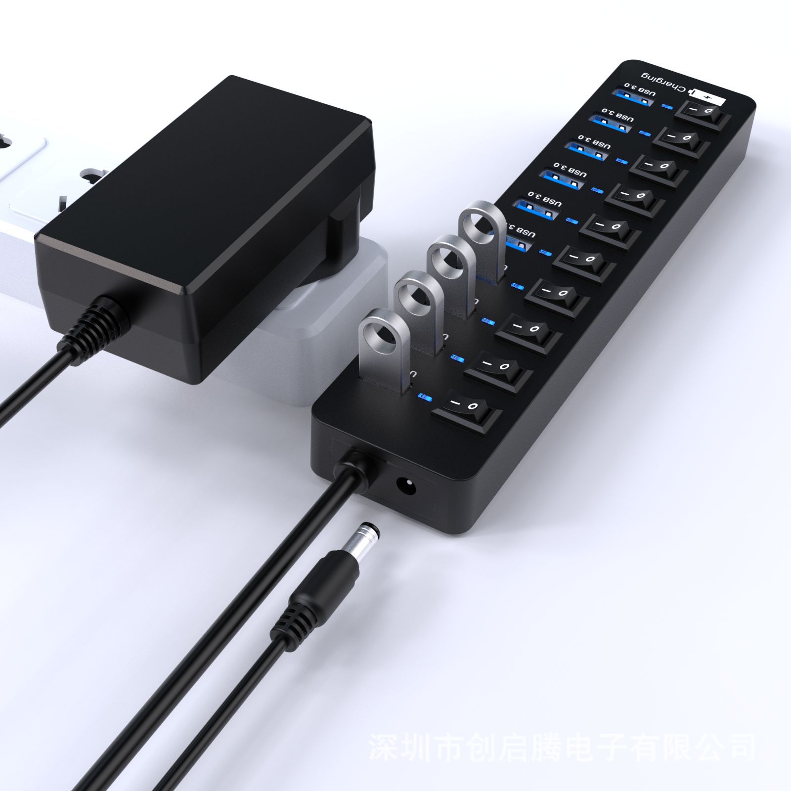 1.外置USB3.0十口集线器。即插即用
