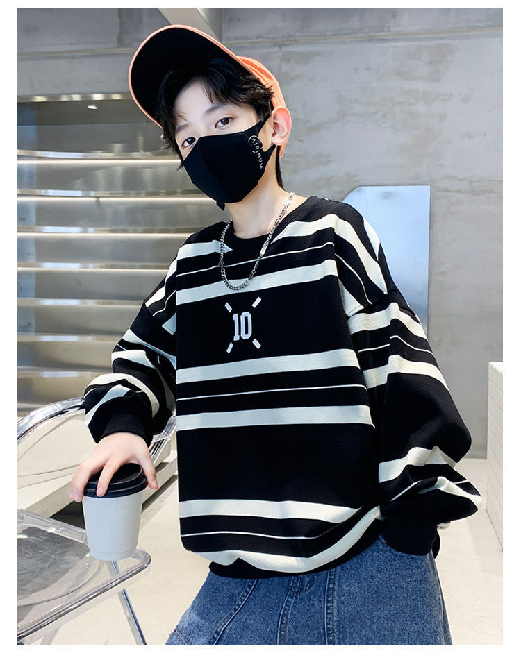 남아용 스웨트셔츠 봄가을 2025 신상 아동 봄옷 트렌디 브랜드 스트라이프 티셔츠 중대형 아동용 멋있고 패셔너블스토어 가기