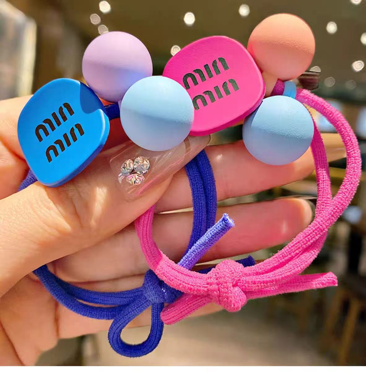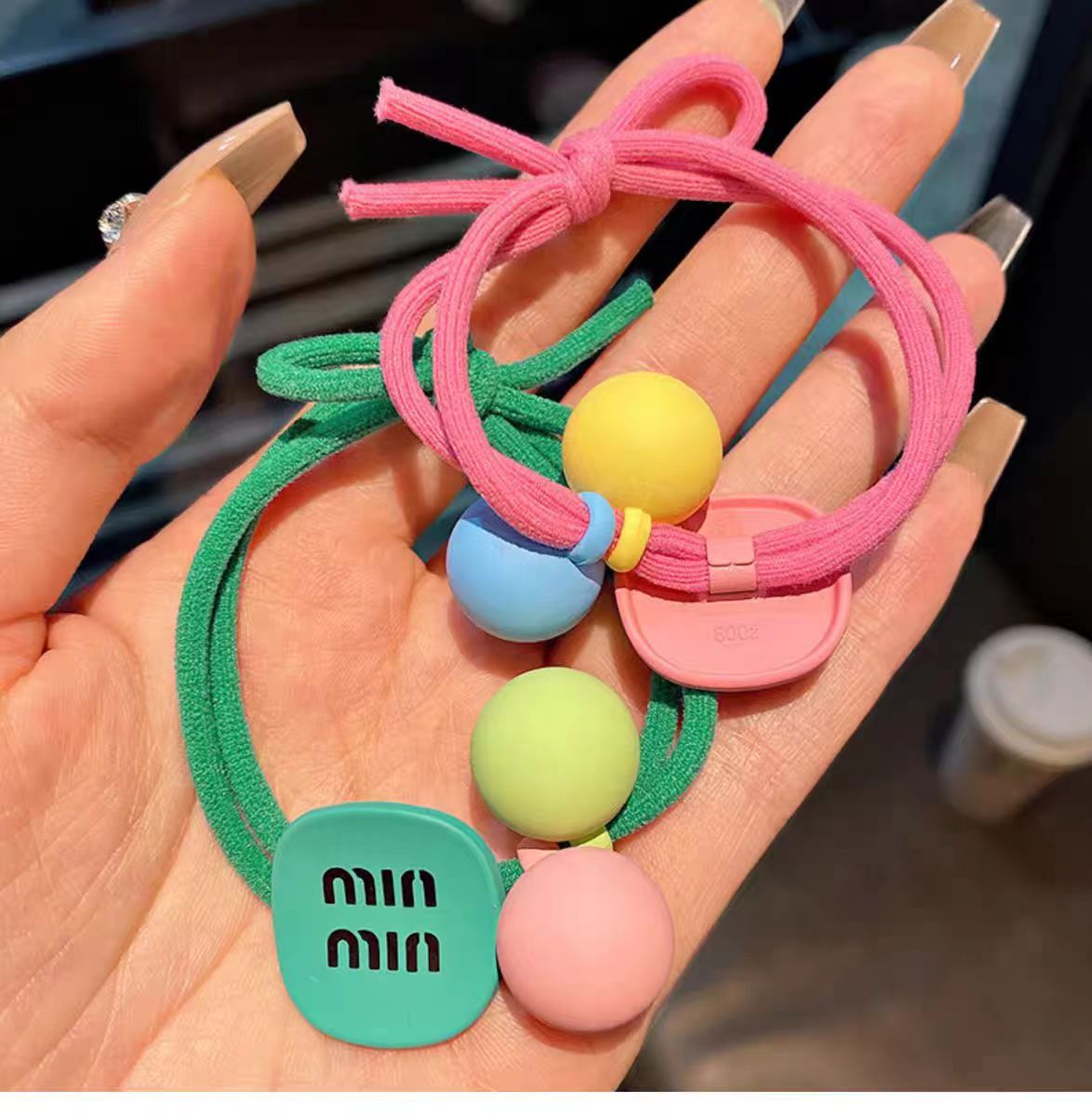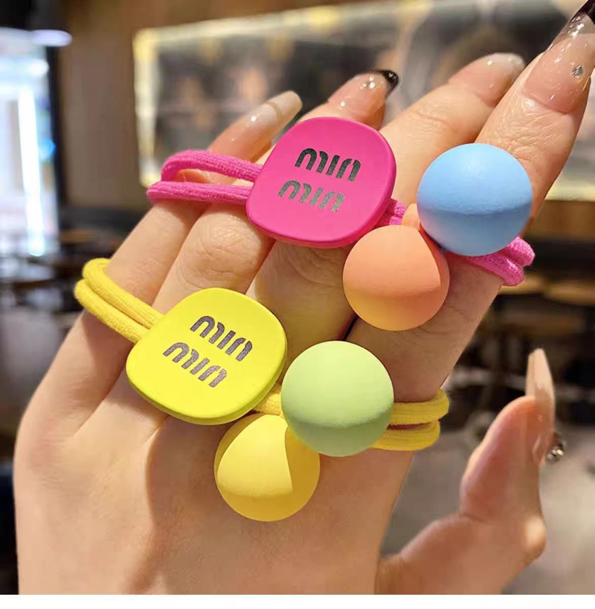 높은 탄성 매듭 헤어 밴드 캔디 컬러 소녀 포니 테일 헤어 로프 달콤한 볼 헤어 넥타이 헤어 로프 귀여운 고무 밴드 헤어 액세서리스토어 가기