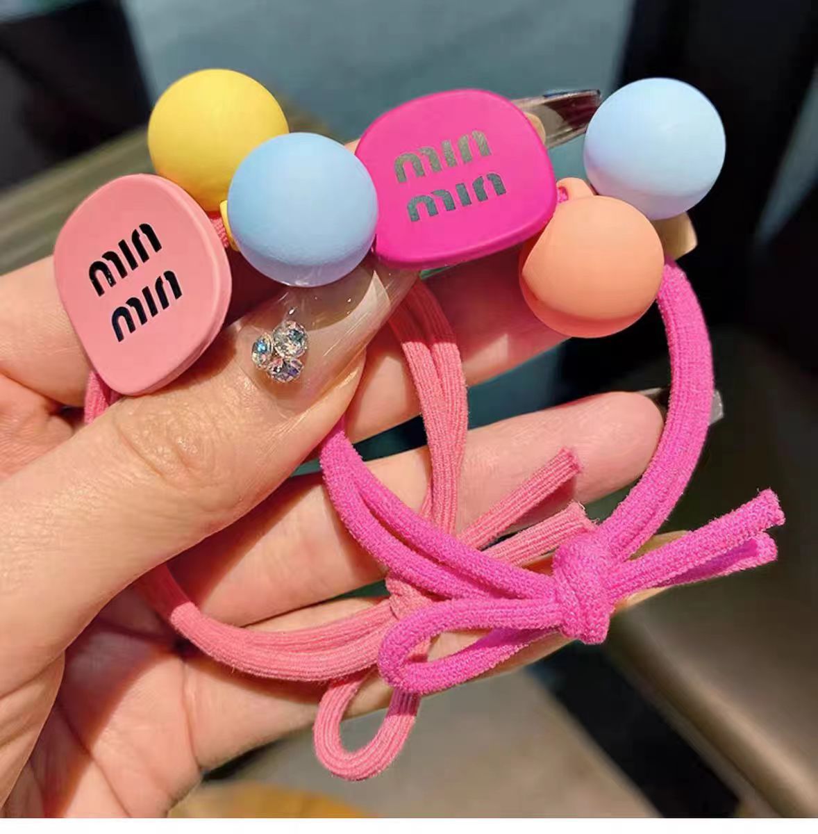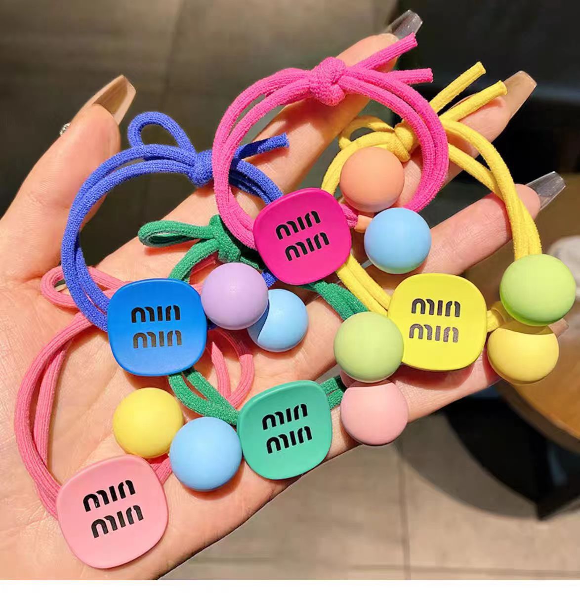 높은 탄성 매듭 헤어 밴드 캔디 컬러 소녀 포니 테일 헤어 로프 달콤한 볼 헤어 넥타이 헤어 로프 귀여운 고무 밴드 헤어 액세서리