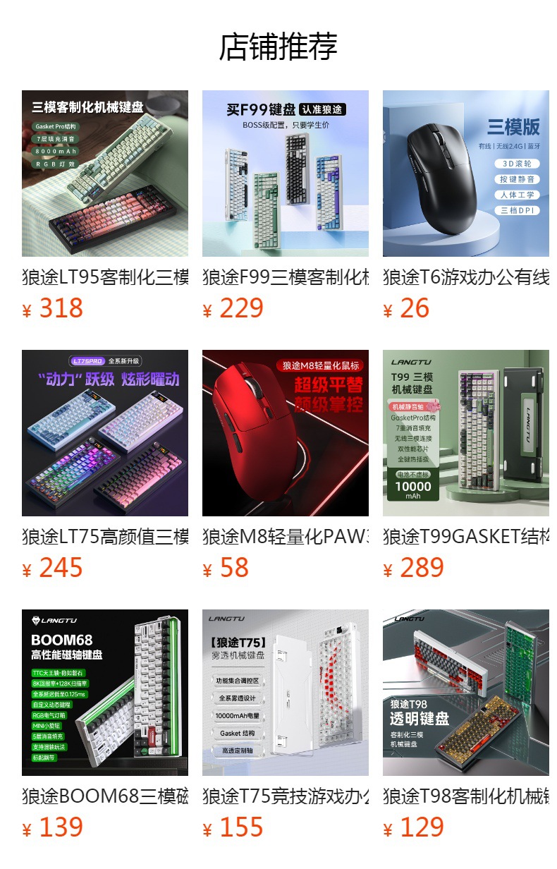 狼途L98无线2.4g蓝牙三模键盘 女生高颜值机械手感拼色RGB背光键盘