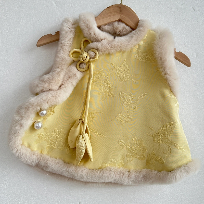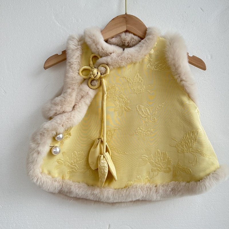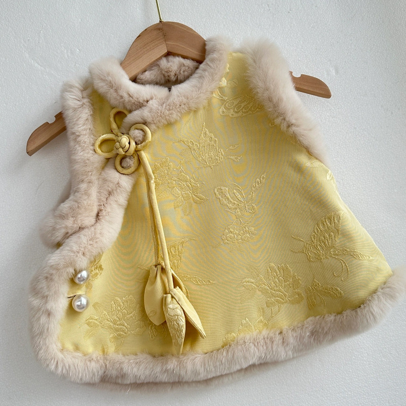 Ningli Winter Girls 'Baby Girls를위한 새로운 중국 벨벳 조끼 중국 스타일 신년 서비스 자카드 당나라 세트 조끼스토어 가기