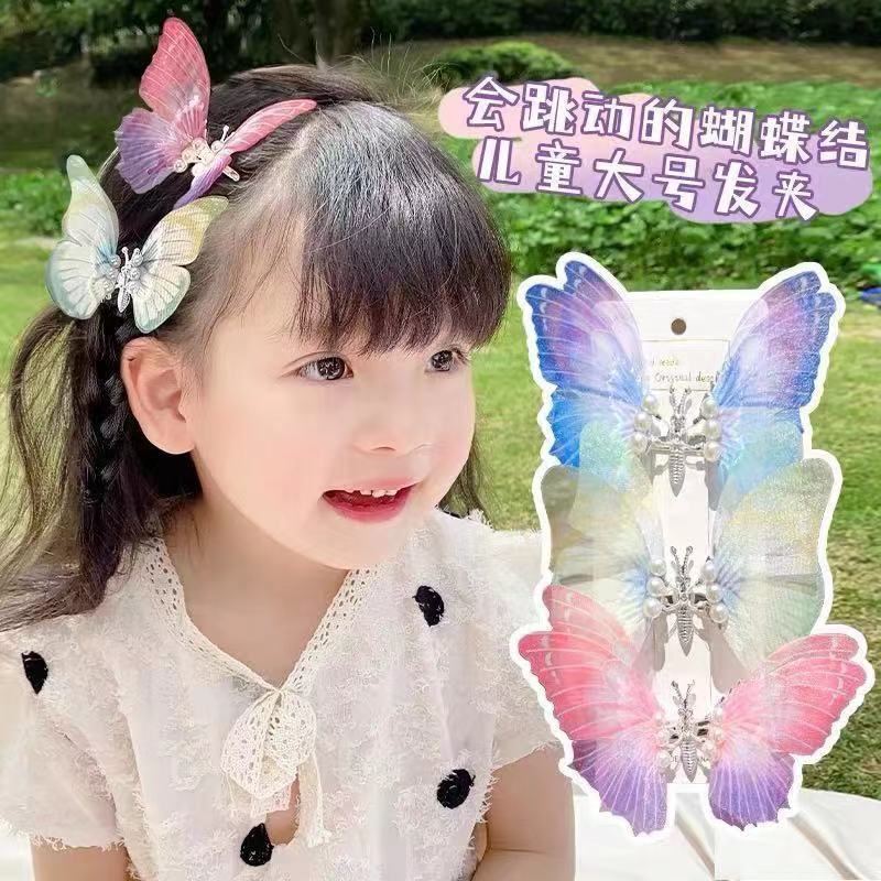 움직일 수있는 나비 머리핀 어린이 덕빌 클립 그라디언트 나비 머리핀 헤어 액세서리 인터넷 유명인 어린 소녀 날개 사이드 클립스토어 가기