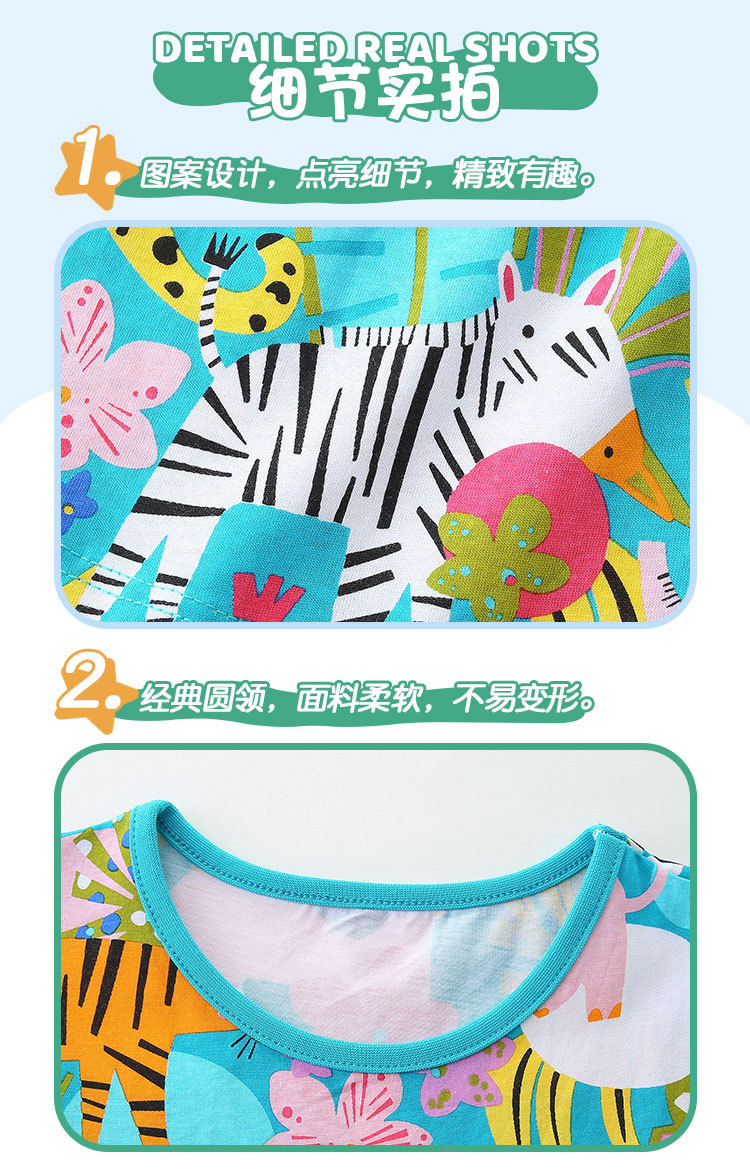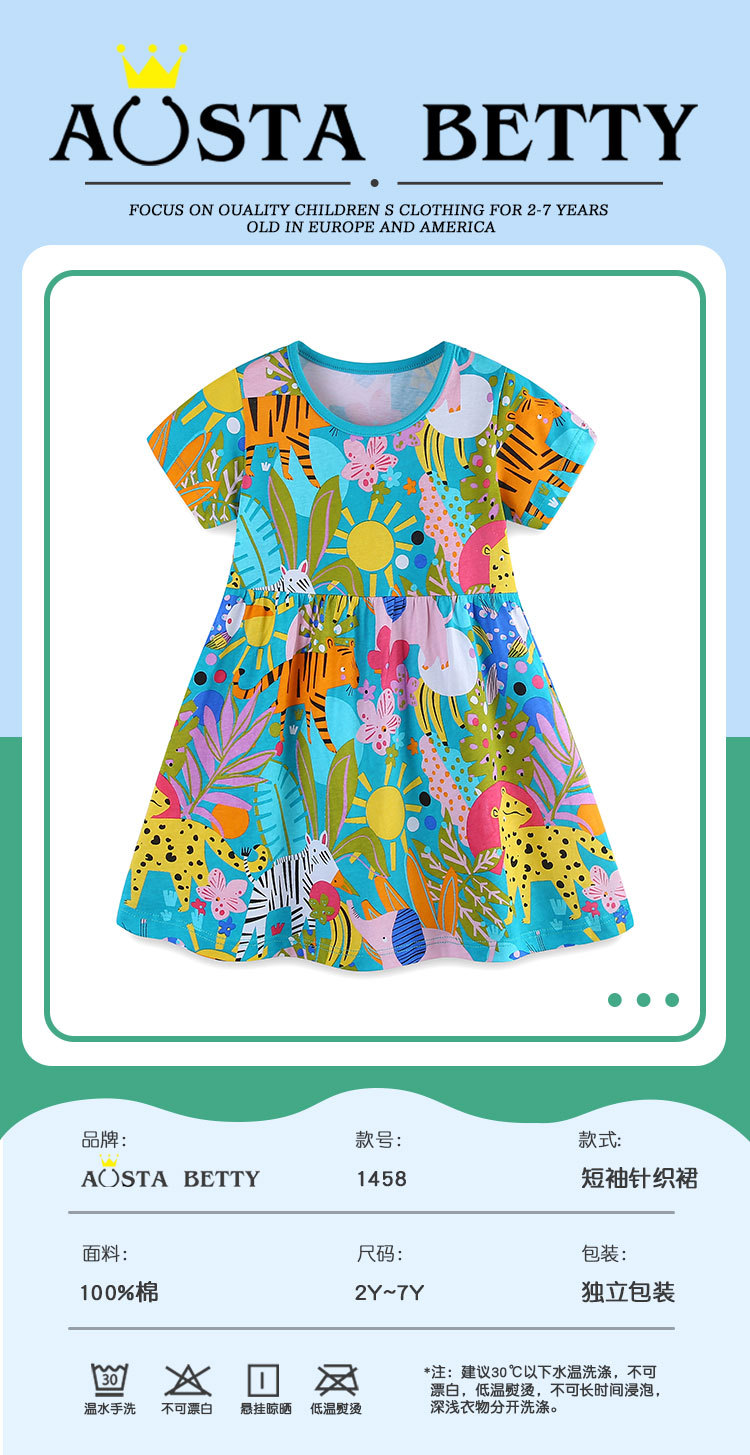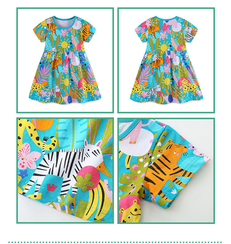 여름 신상 여아 원피스 만화 동물 프린트 공주 원피스 라운드넥 풀오버 니트 면 반팔 아동 원피스