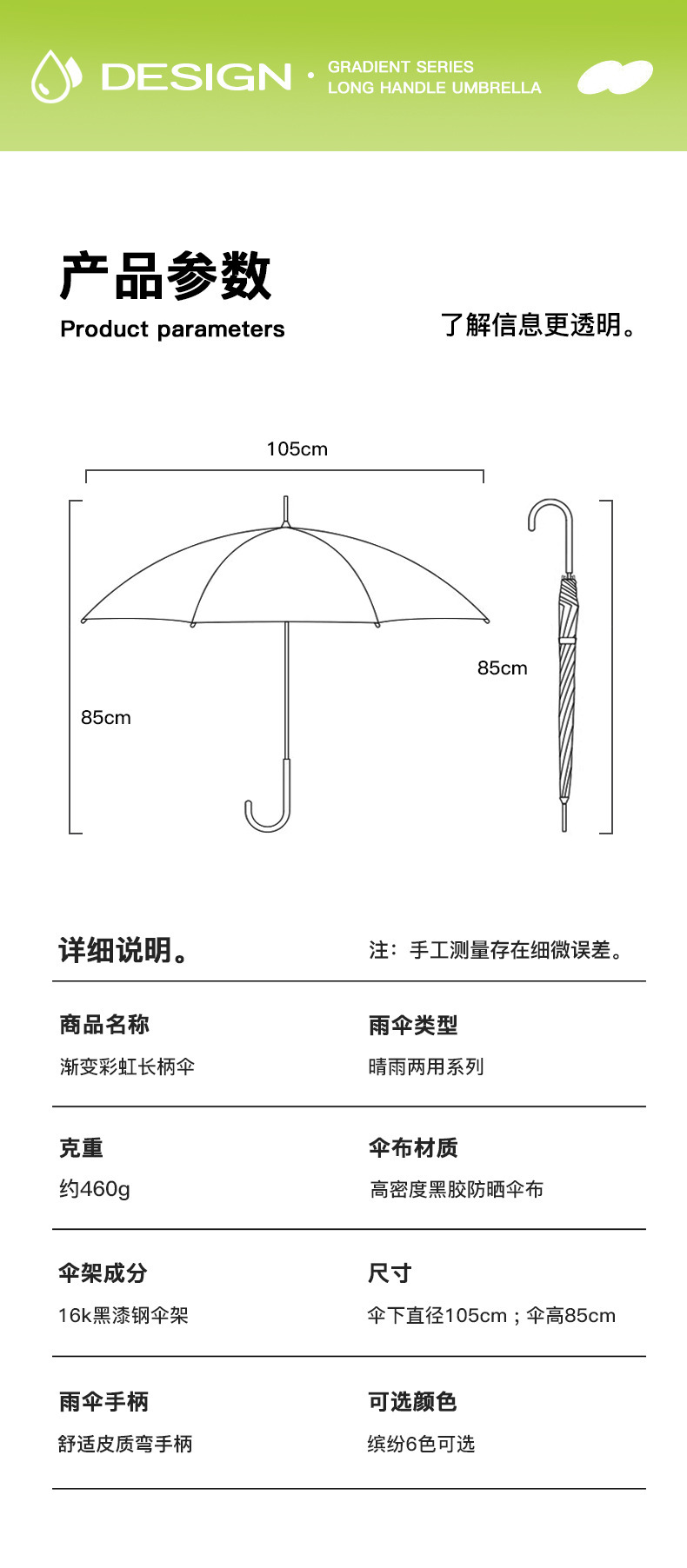 • 16본[그라디언트 컬러] 가죽 곡선형 손잡이-그래스 그린