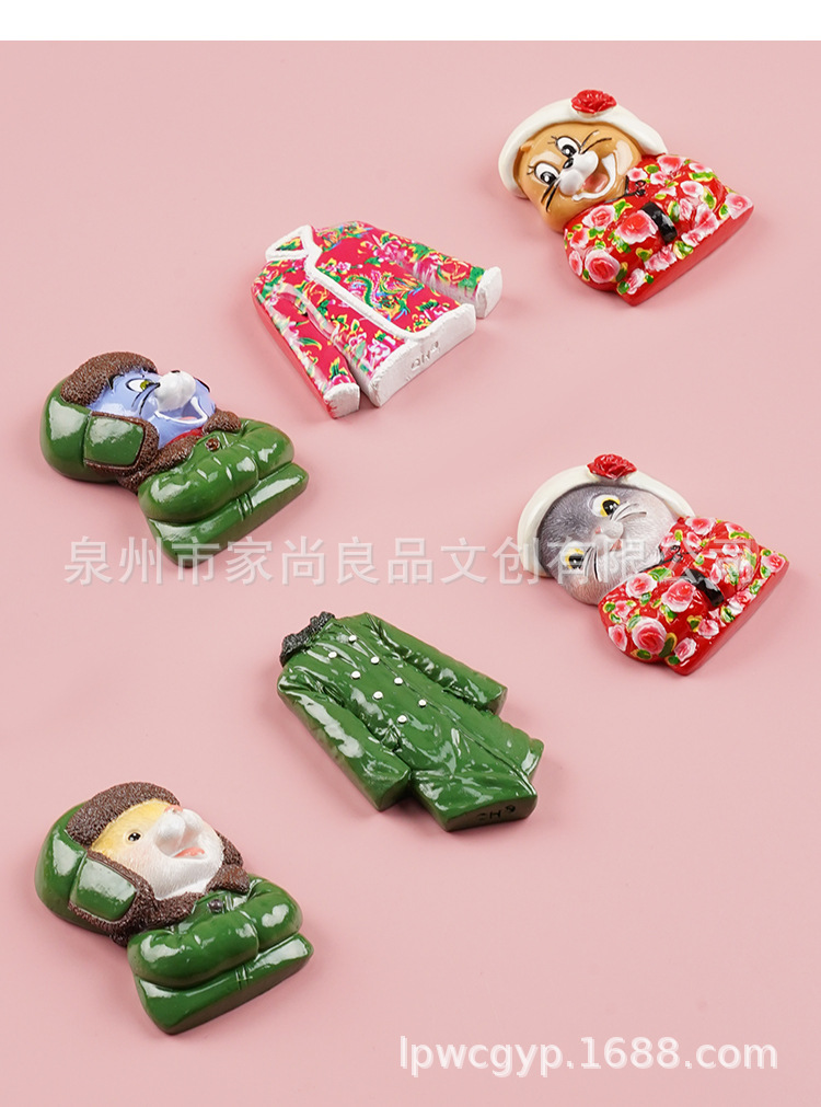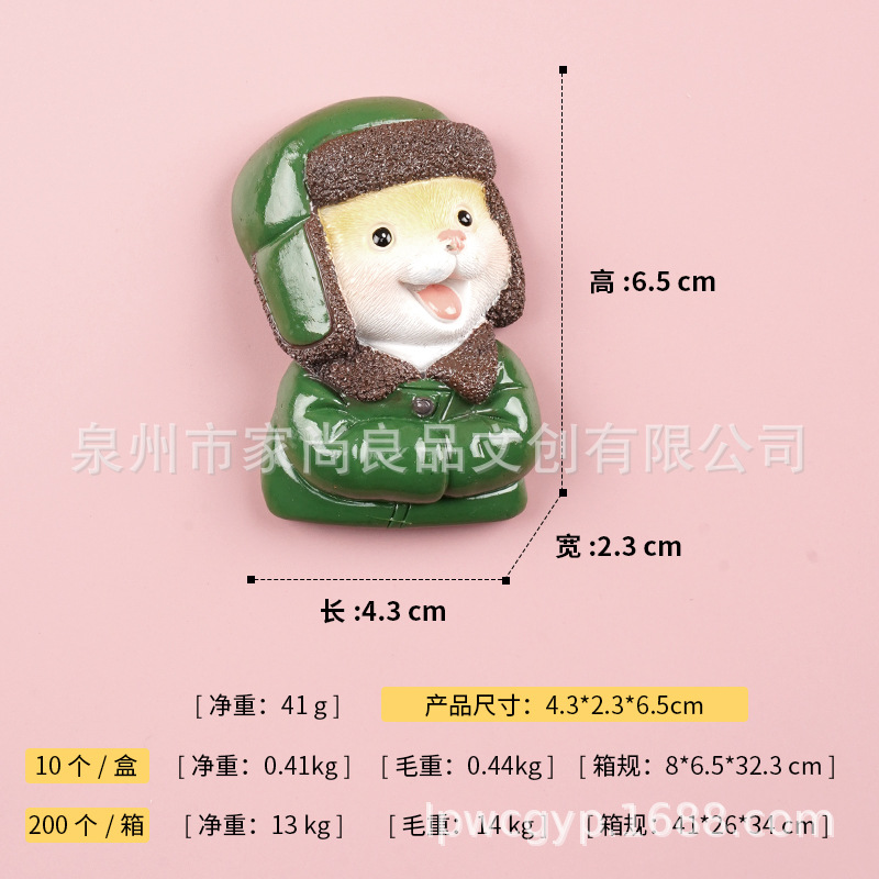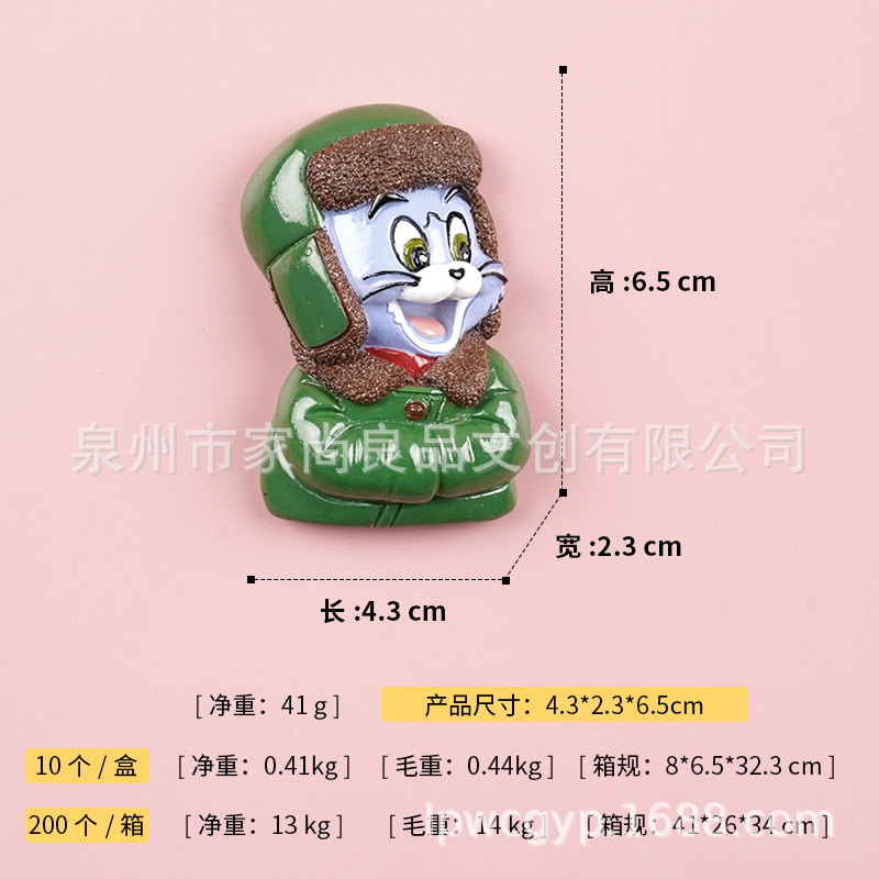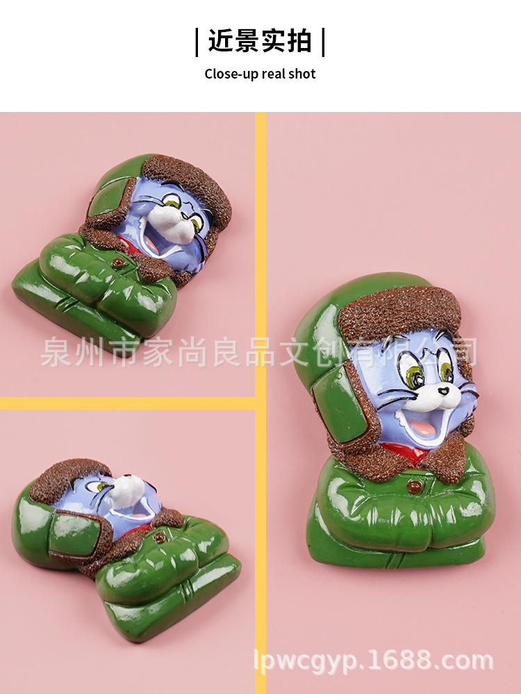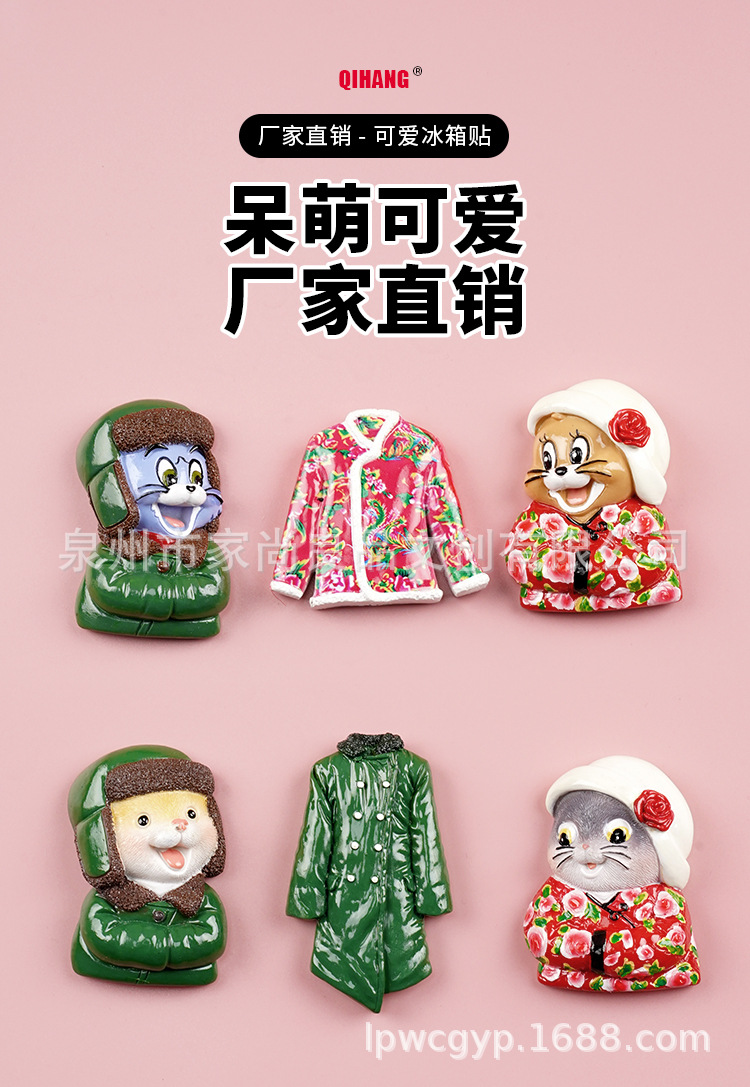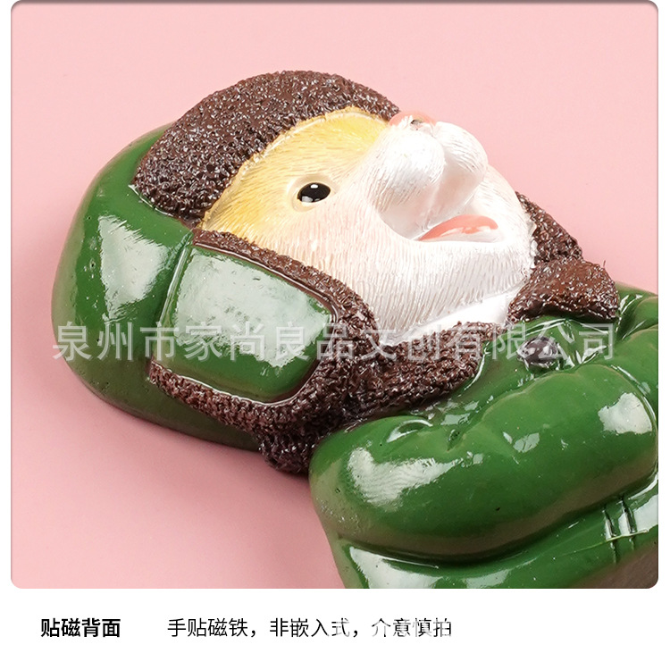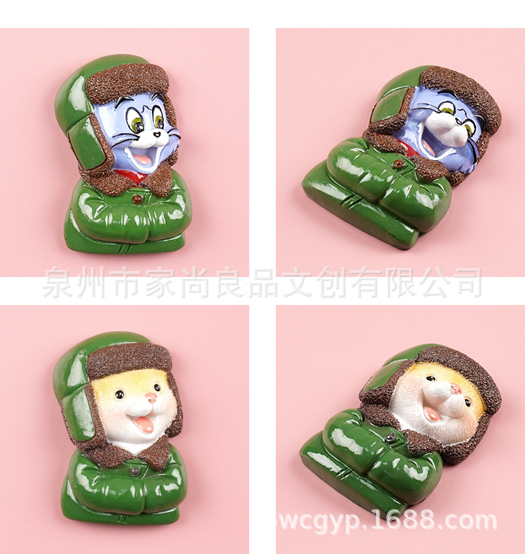동북 스타일 새로운 만화 녹색 군사 코트 고양이 꽃면 코트 마우스 헤드 3 차원 냉장고 스티커 장식 창조적 인 자기 스티커스토어 가기