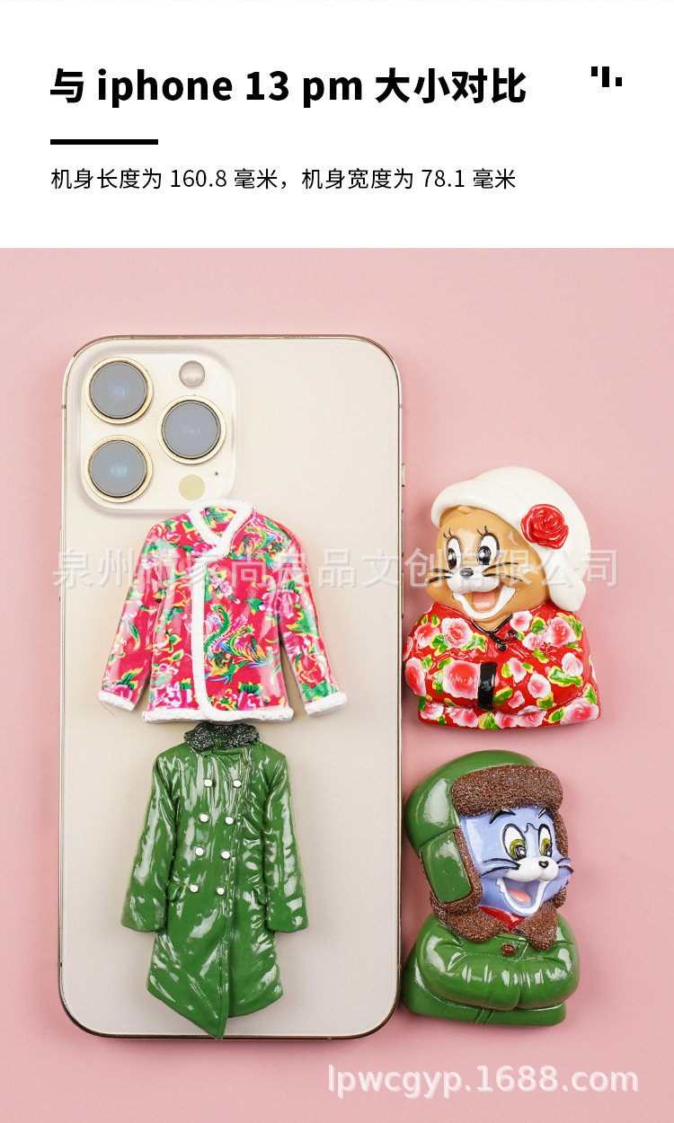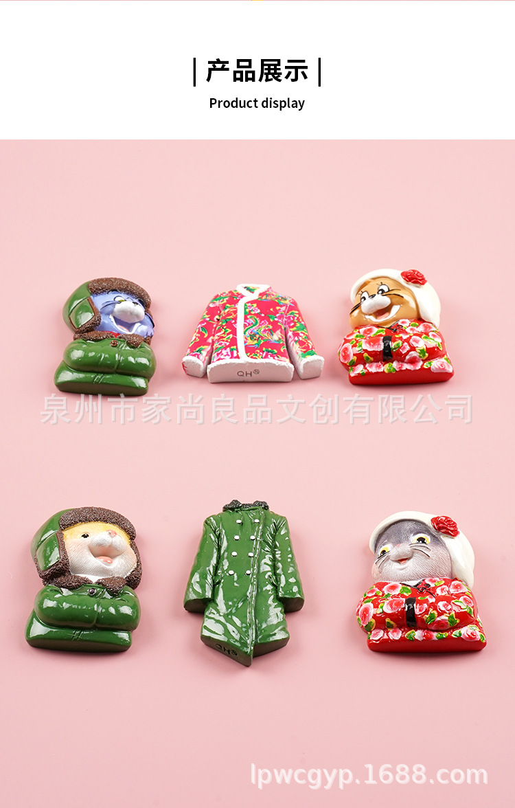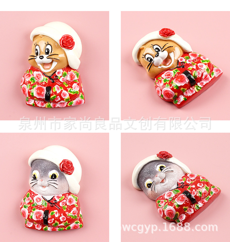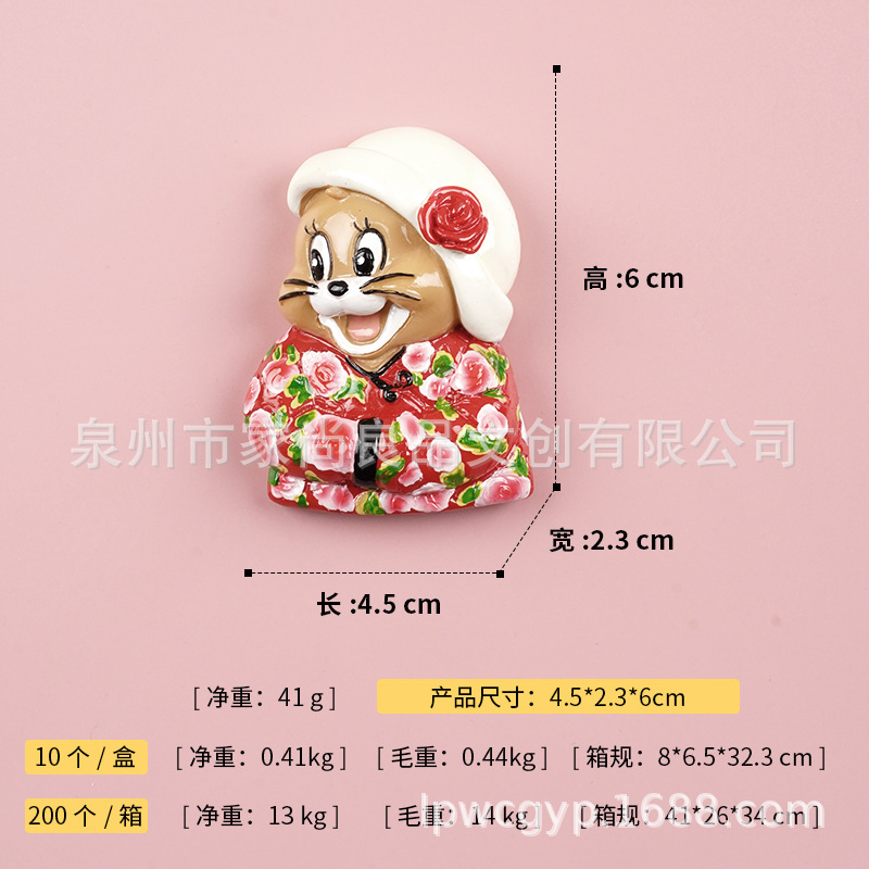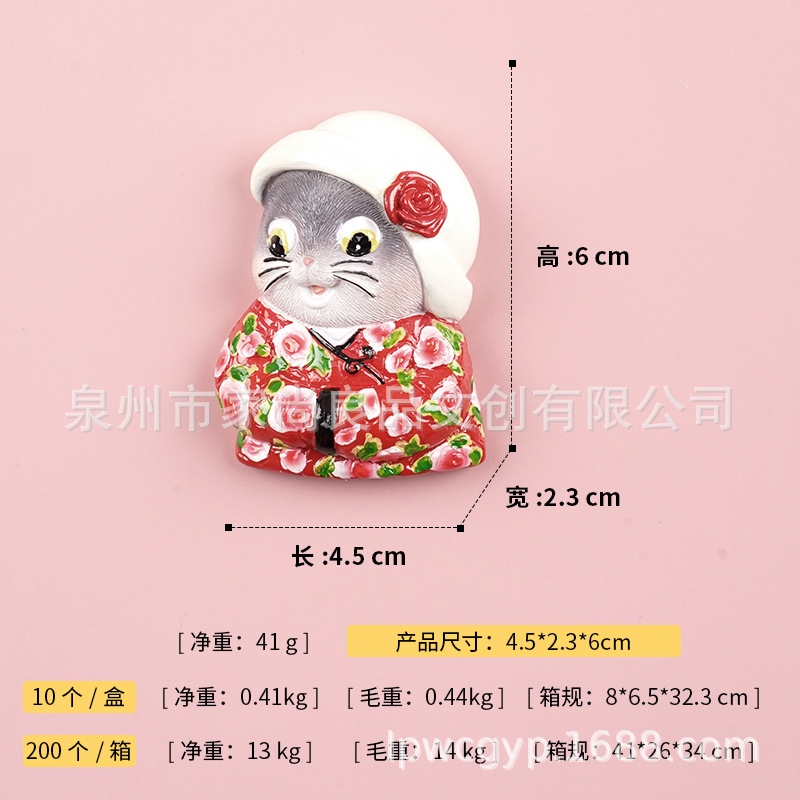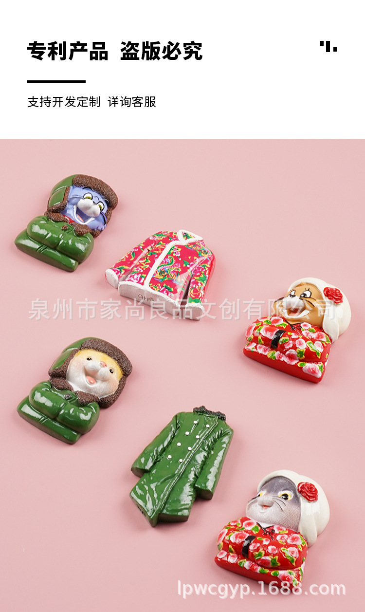 동북 스타일 새로운 만화 녹색 군사 코트 고양이 꽃면 코트 마우스 헤드 3 차원 냉장고 스티커 장식 창조적 인 자기 스티커스토어 가기