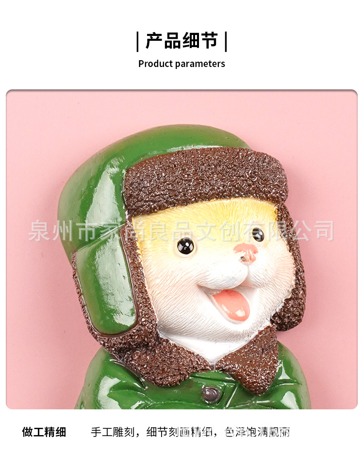 동북 스타일 새로운 만화 녹색 군사 코트 고양이 꽃면 코트 마우스 헤드 3 차원 냉장고 스티커 장식 창조적 인 자기 스티커