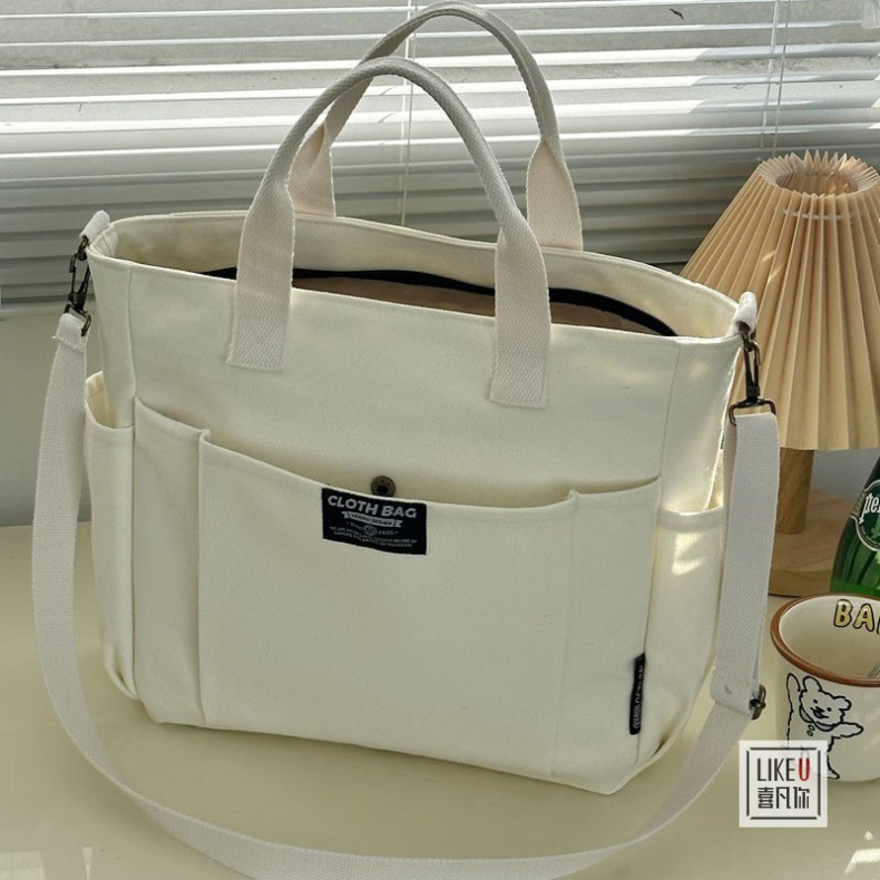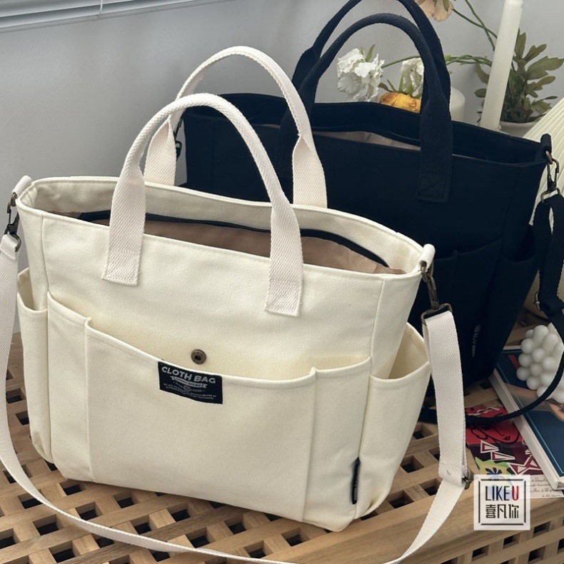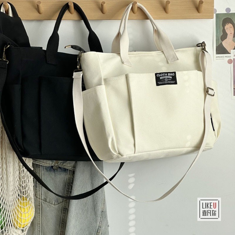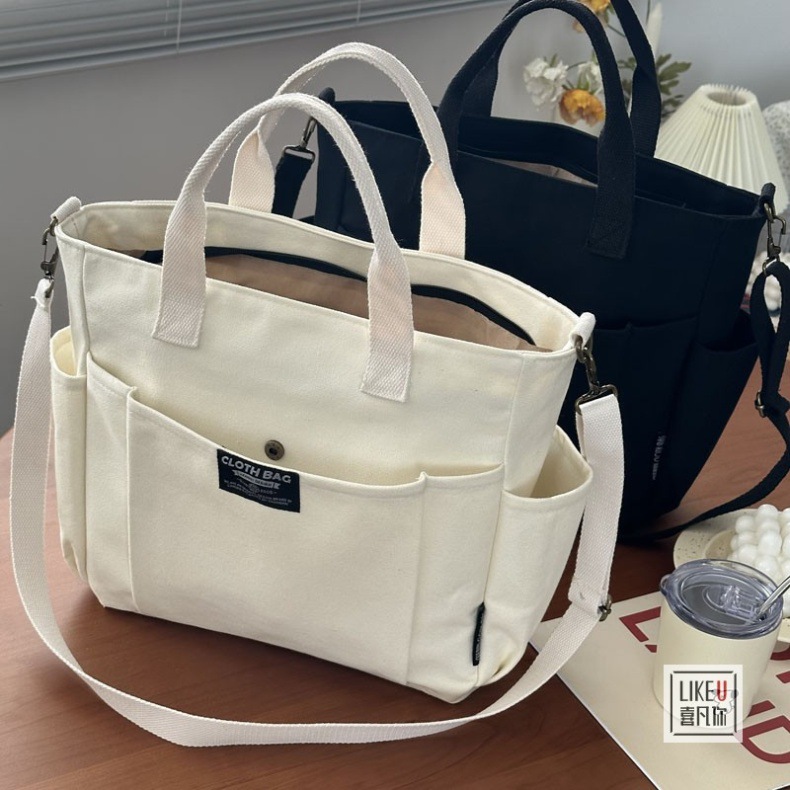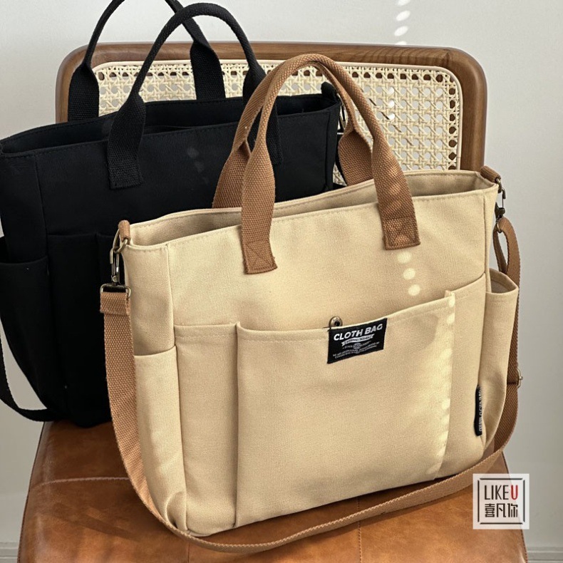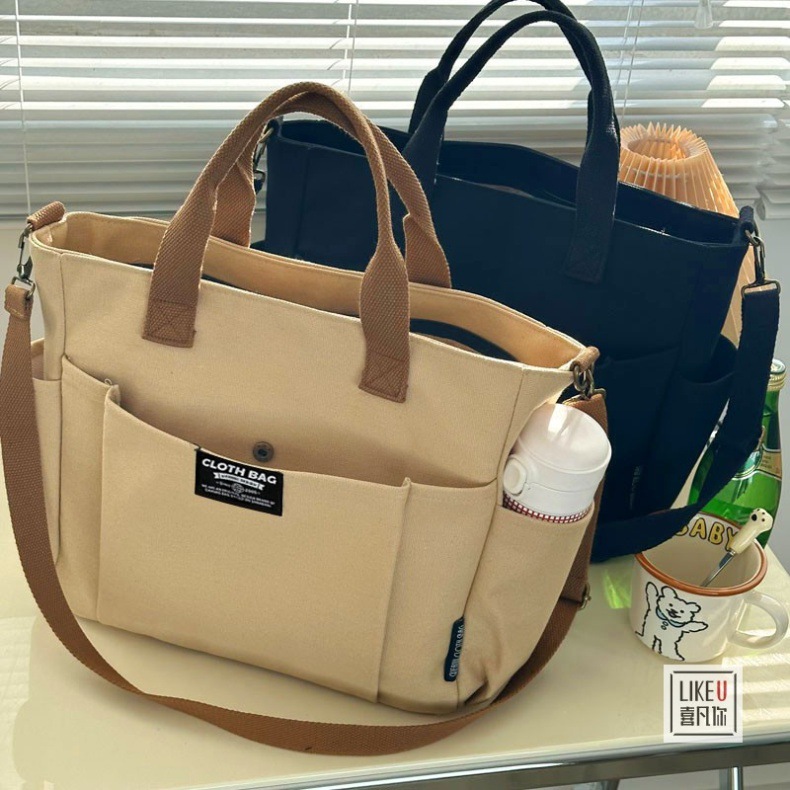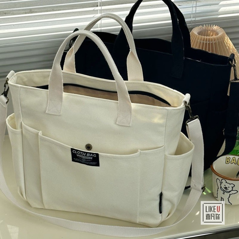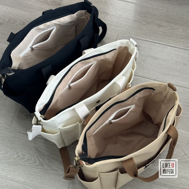 원래 두꺼운 멀티 포켓 일본 토트 캔버스 가방 캐주얼 학생 컴퓨터 간단한 휴대용 어깨 크로스 바디 학교 가방스토어 가기
