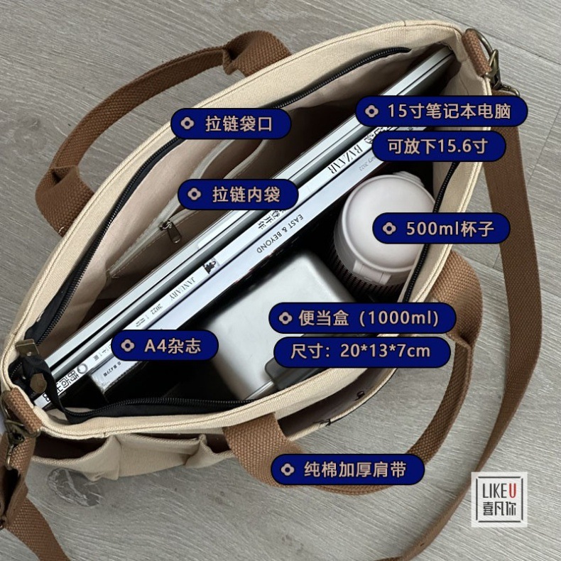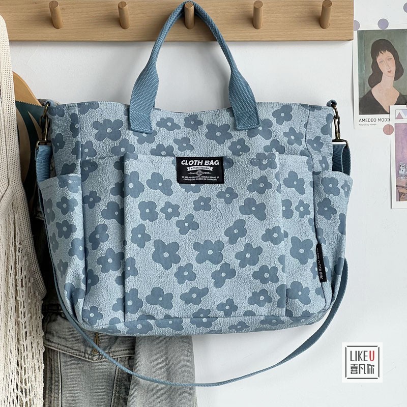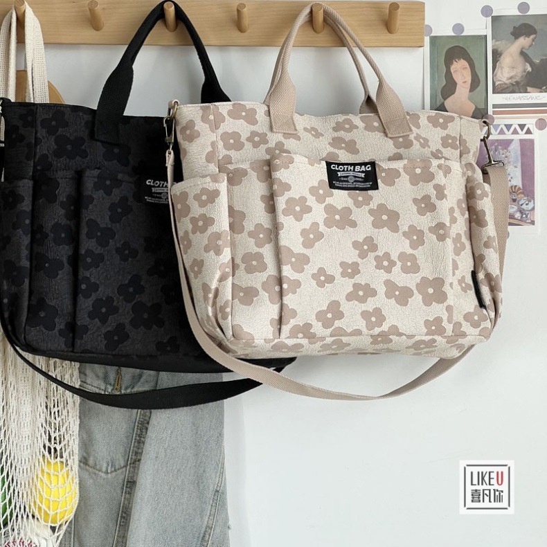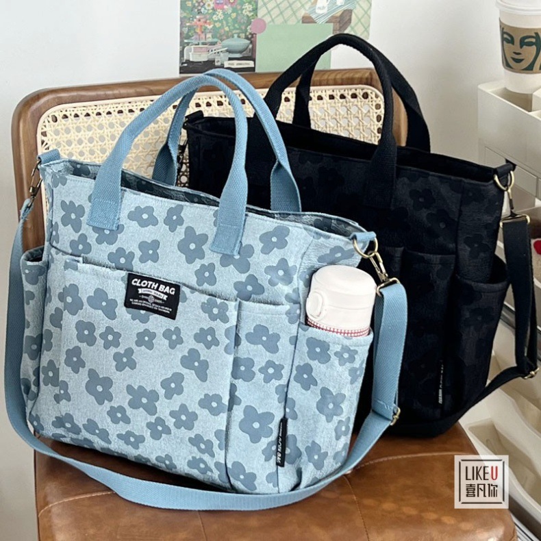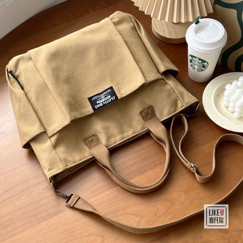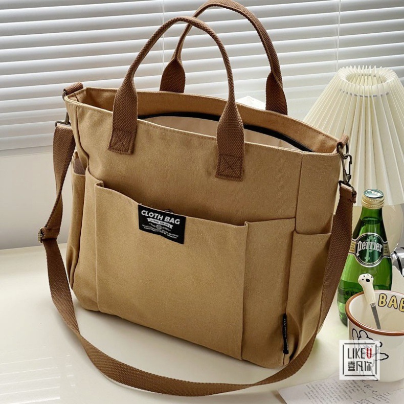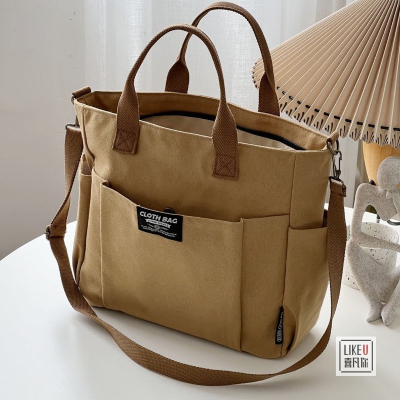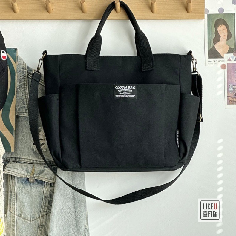 원래 두꺼운 멀티 포켓 일본 토트 캔버스 가방 캐주얼 학생 컴퓨터 간단한 휴대용 어깨 크로스 바디 학교 가방스토어 가기