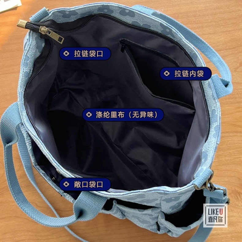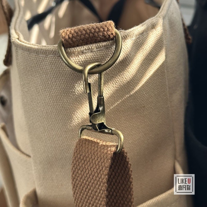采用加厚帆布,有一定的挺度,非软塌塌,空包可以站立