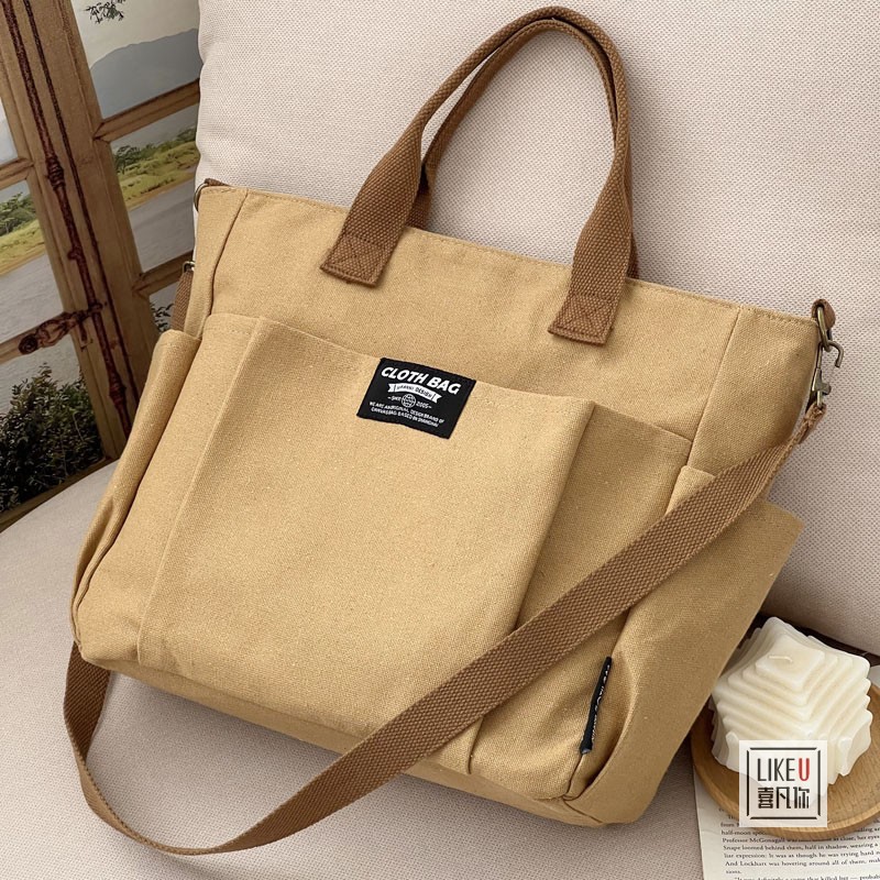 원래 두꺼운 멀티 포켓 일본 토트 캔버스 가방 캐주얼 학생 컴퓨터 간단한 휴대용 어깨 크로스 바디 학교 가방