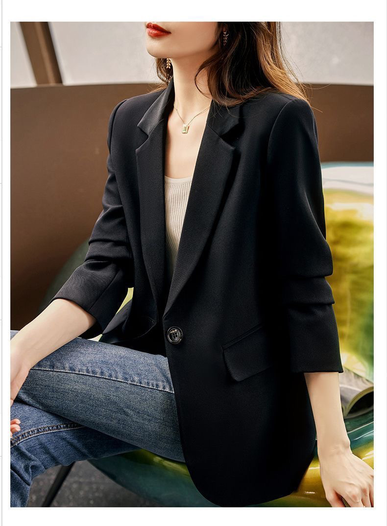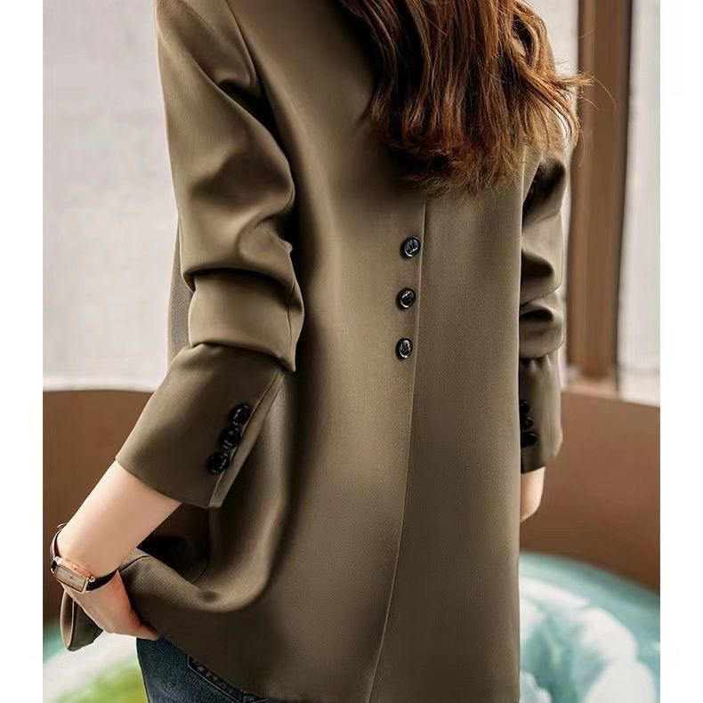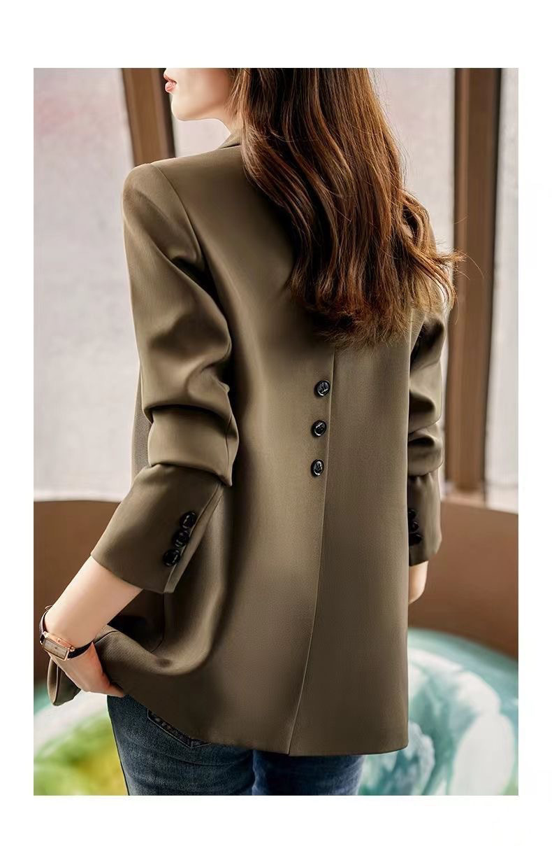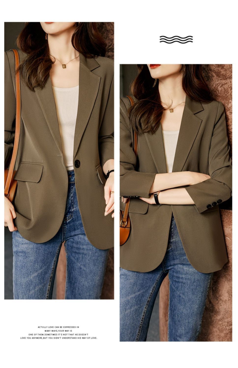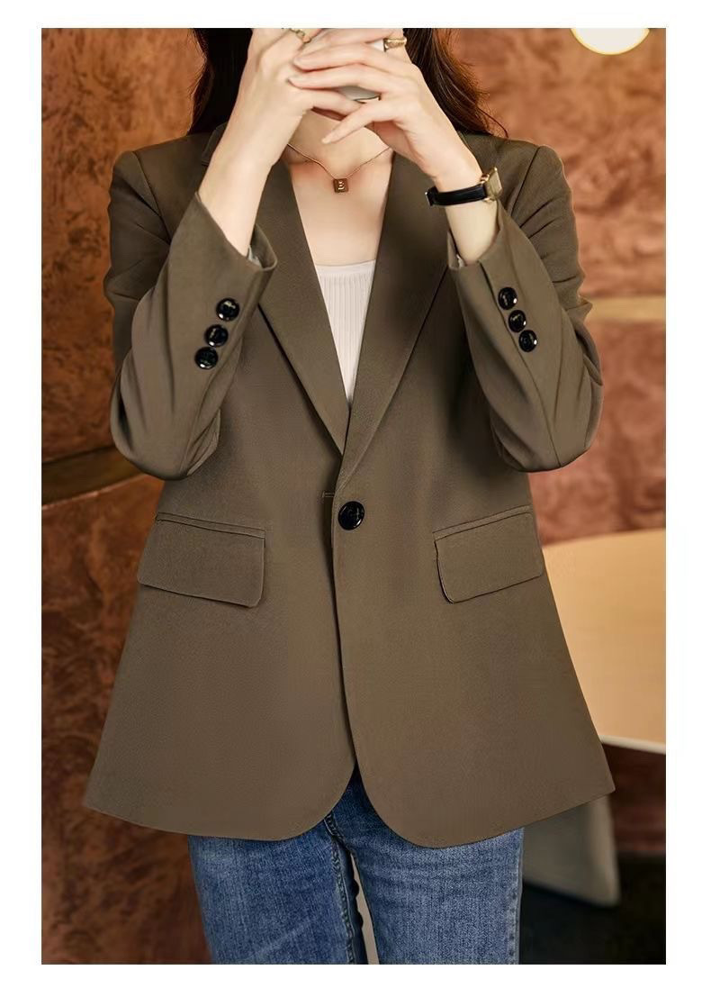 杏色西装外套女小个子韩版2023春秋新款高级感炸街休闲设计感西服