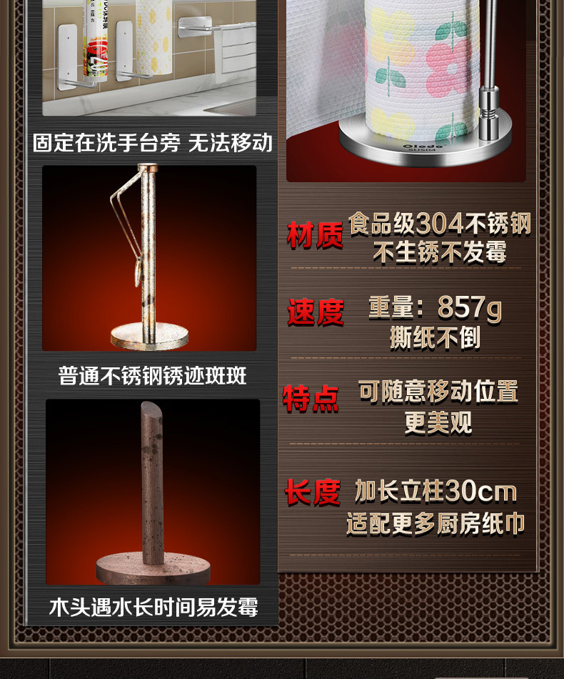 • 올스틸 304 주방 베이스 수직 종이 타월 홀더 [화장지 롤 99%에 적합]