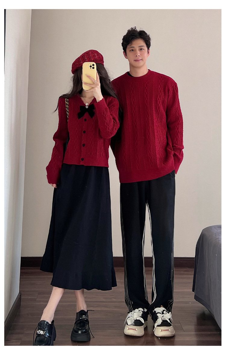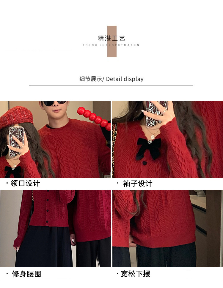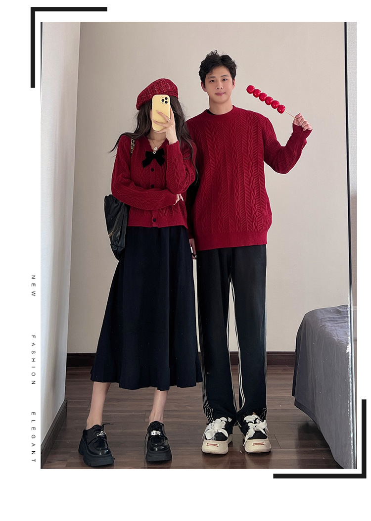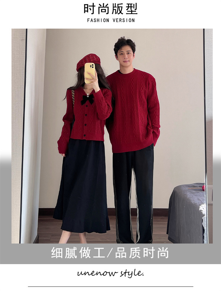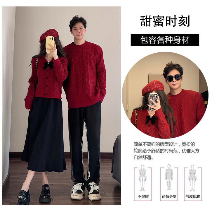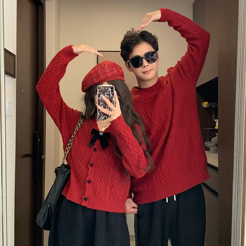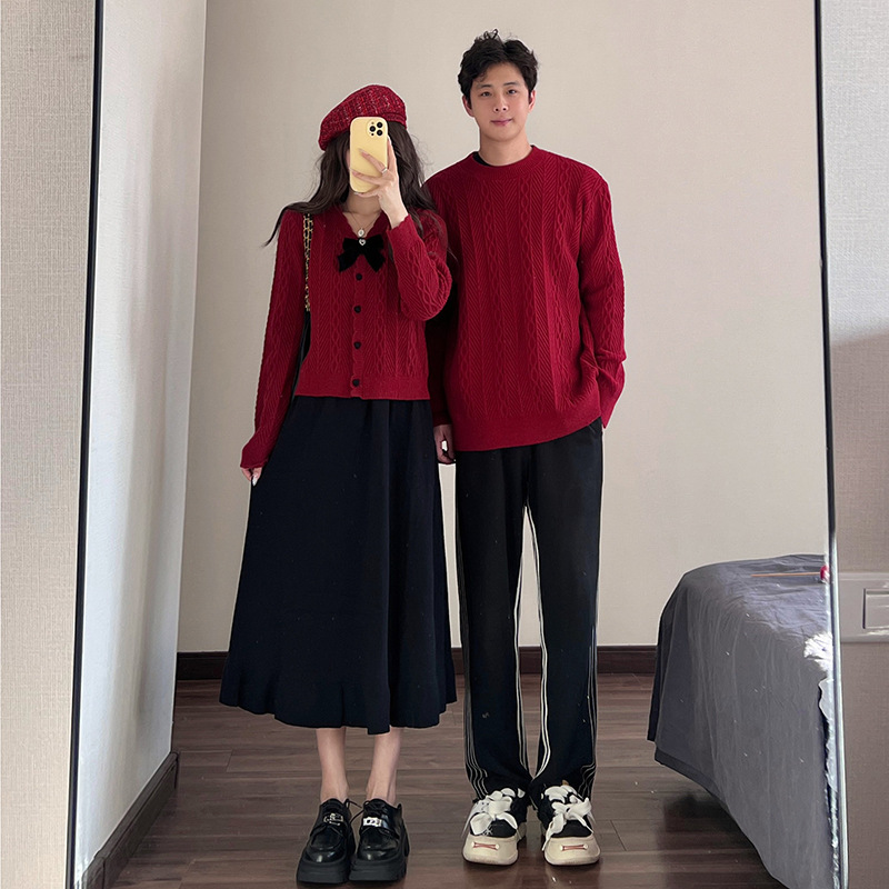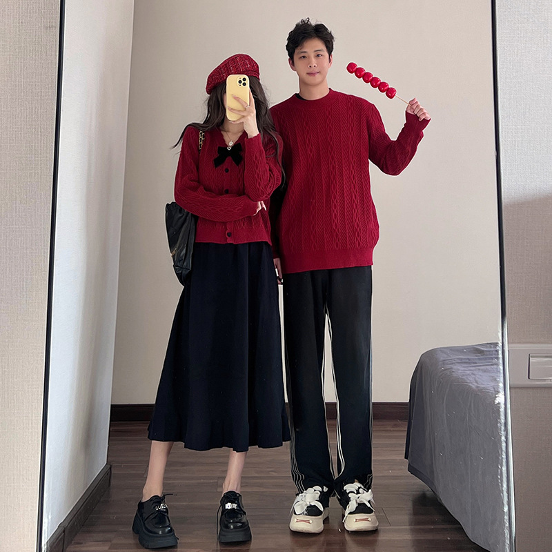 커플은 가을과 겨울 새해 생활 스웨터를 입는다. 한국 여성 기질 활 니트 카디건 세트 스커트스토어 가기