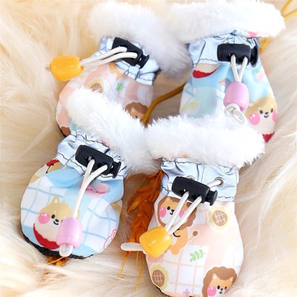강아지 신발, 소형견 애완동물, 겨울 벨벳, 떨어지지 않는 테디 발 커버, 비숑 프리제, 외출시 더러움 방지 및 방수스토어 가기