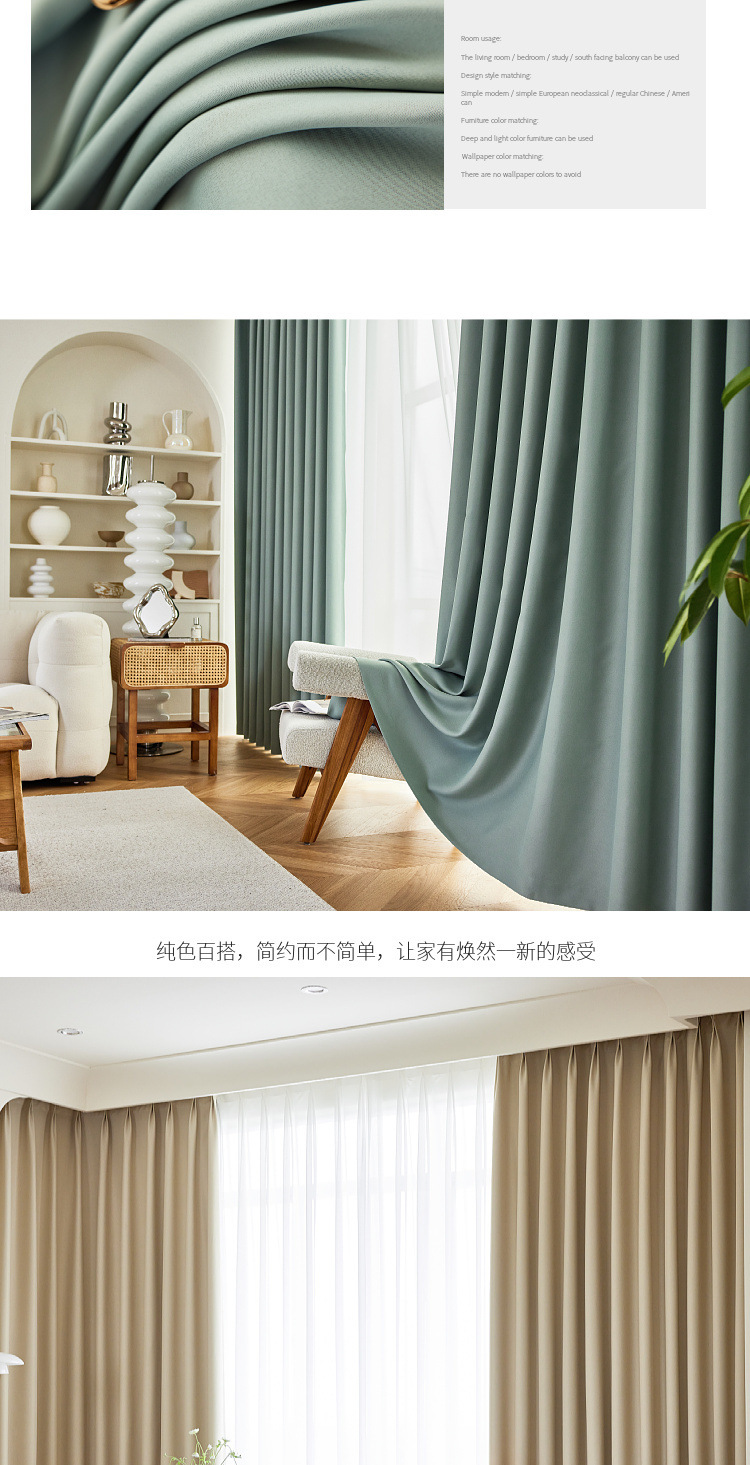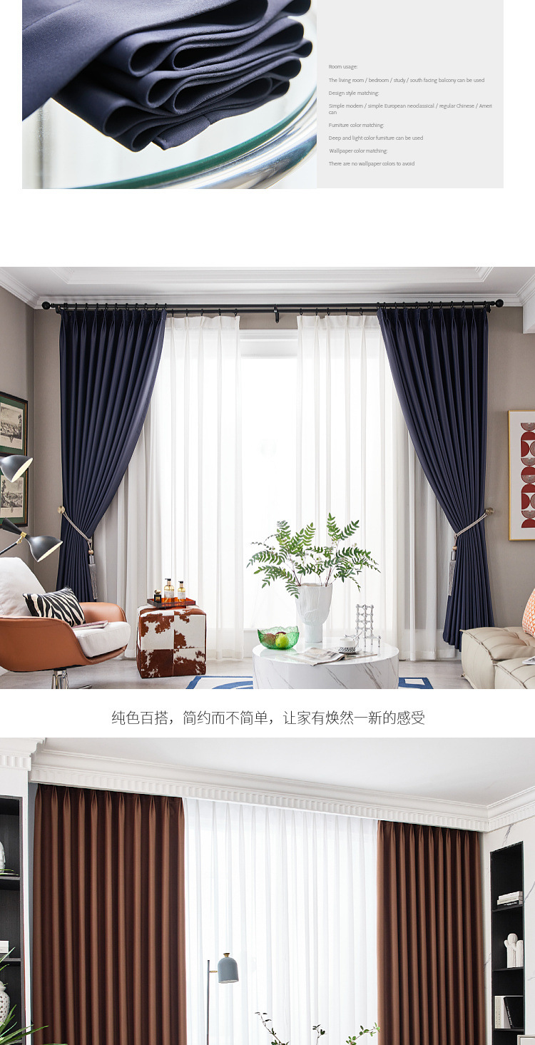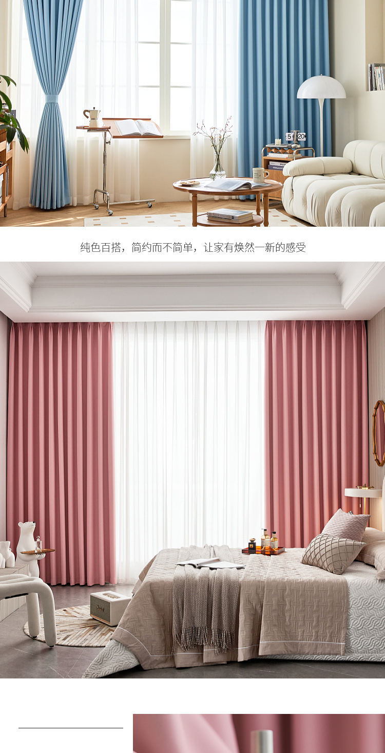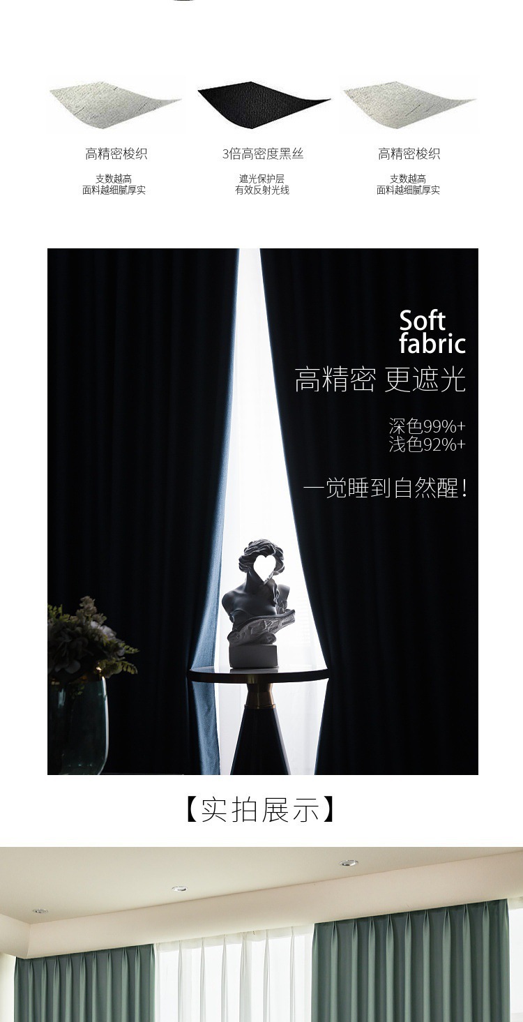 커튼 천을 두껍게 음영 단열 태양 보호 침실 거실 분위기 새로운 임대 하우스 펀치 후크 가정용 완제품스토어 가기