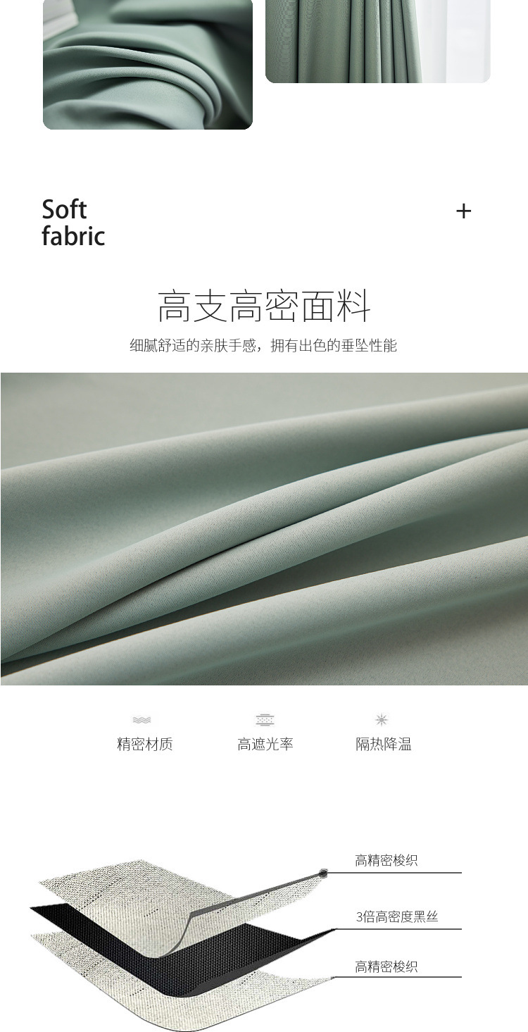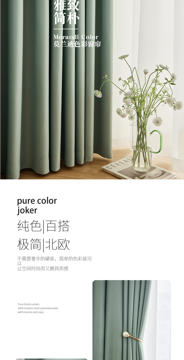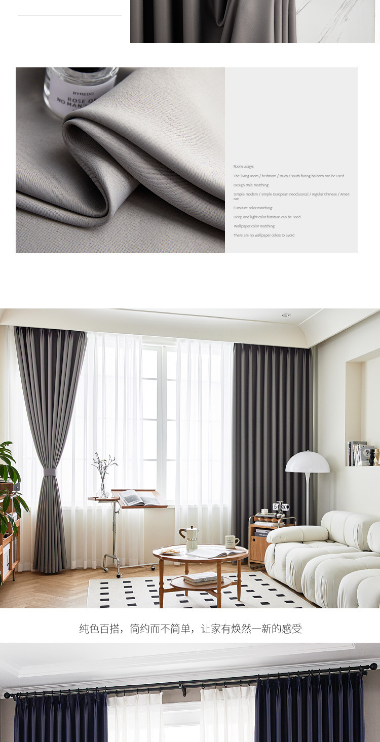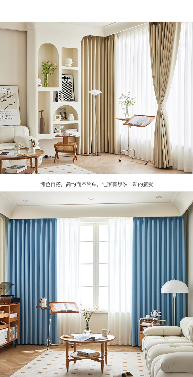 커튼 천을 두껍게 음영 단열 태양 보호 침실 거실 분위기 새로운 임대 하우스 펀치 후크 가정용 완제품스토어 가기