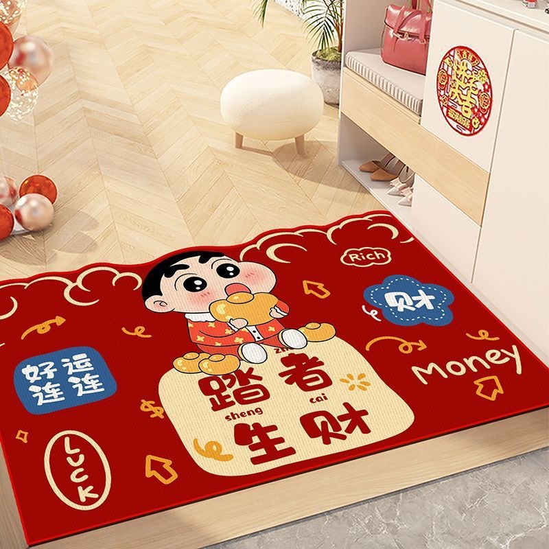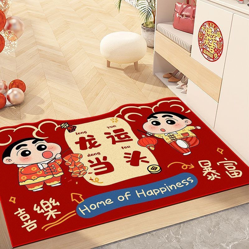 2024 새해 입구 문 매트 스퀘어 스텝 푸 크레용 작은 새 만화 텍스트 흡수성 미끄럼 방지 크리스탈 벨벳 카펫스토어 가기