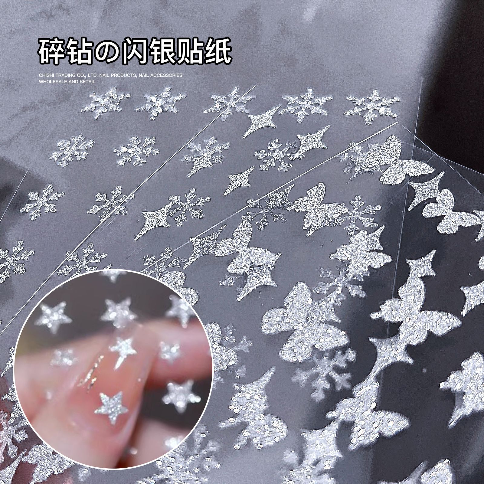 새로운 온라인 유명 인사 다이아몬드 사랑 네일 스티커 슈퍼 플래시 나비 눈송이 스타 작은 패턴 네일 장식 스티커 도매스토어 가기