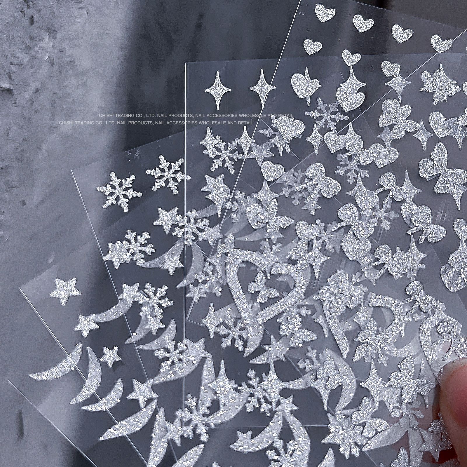 새로운 온라인 유명 인사 다이아몬드 사랑 네일 스티커 슈퍼 플래시 나비 눈송이 스타 작은 패턴 네일 장식 스티커 도매