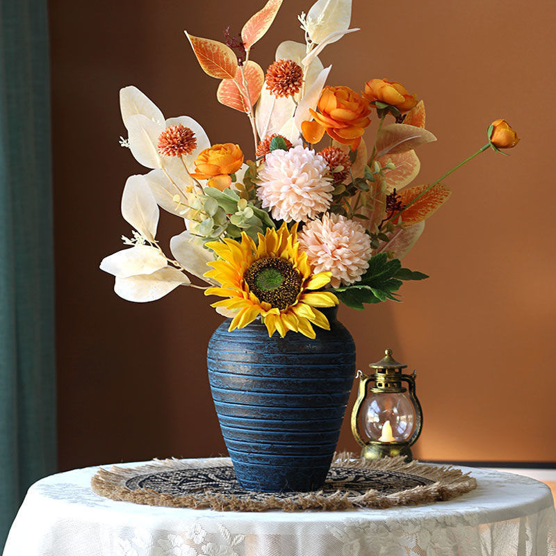 수제 빈티지 세라믹 꽃병 말린 꽃 거실 장식 복도 모델 룸 부드러운 장식 고급 물 꽃 장치