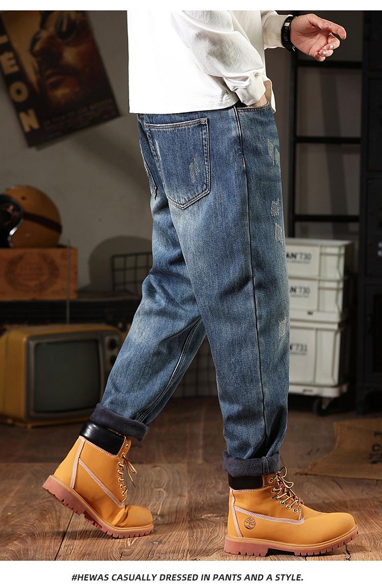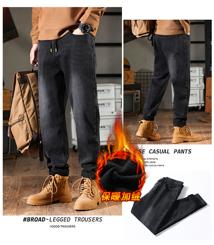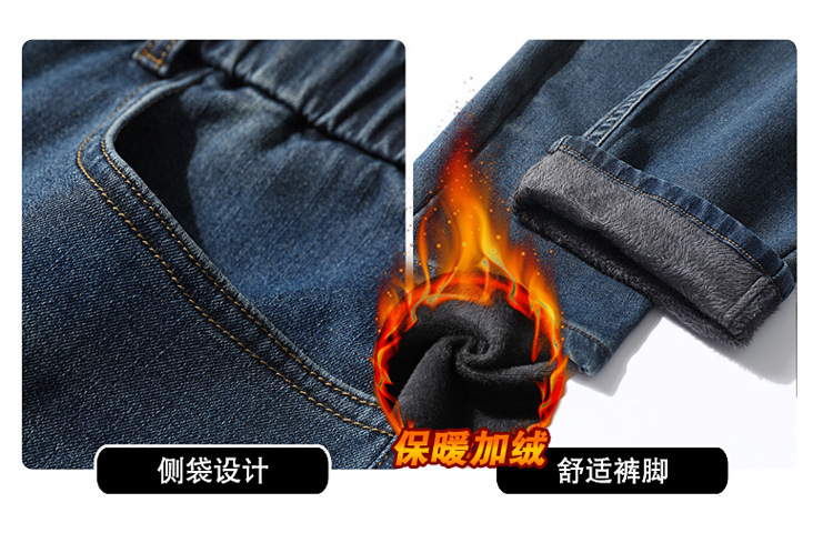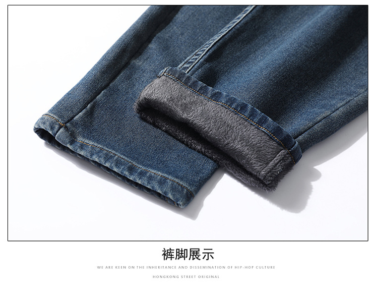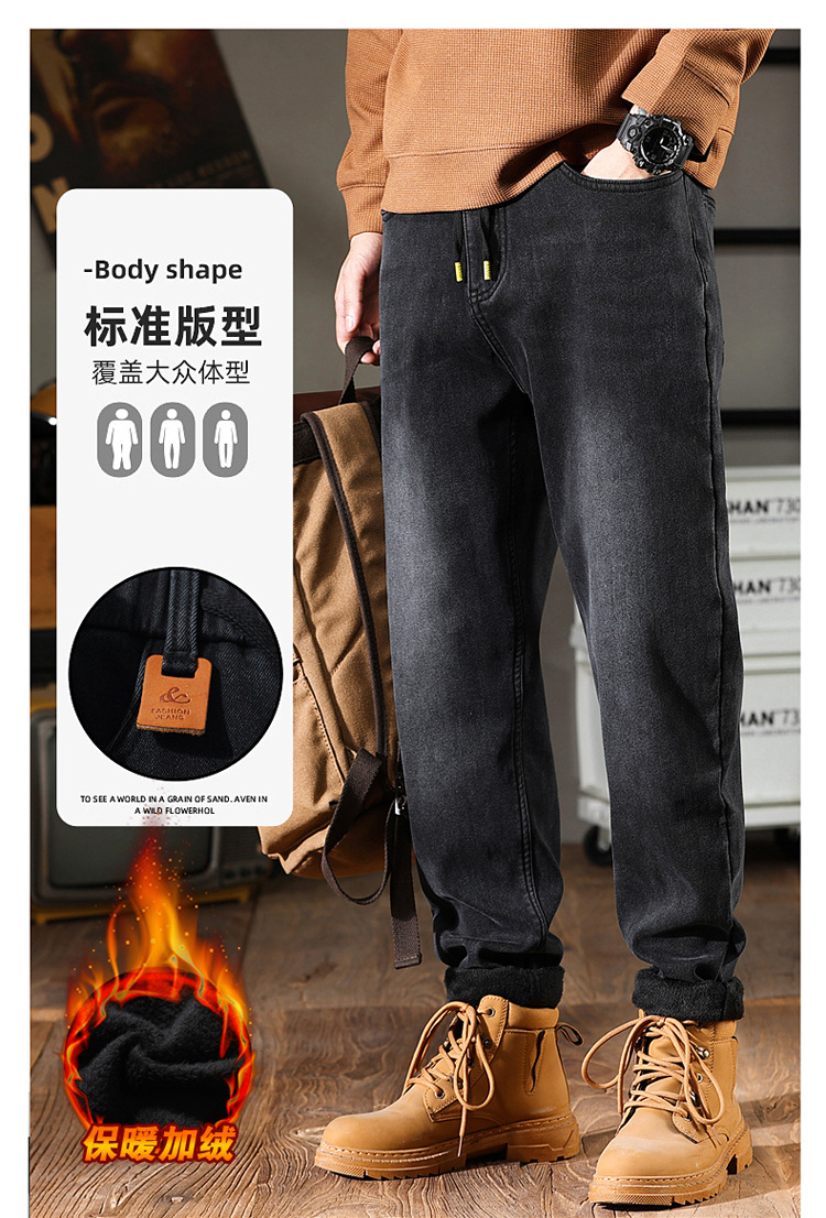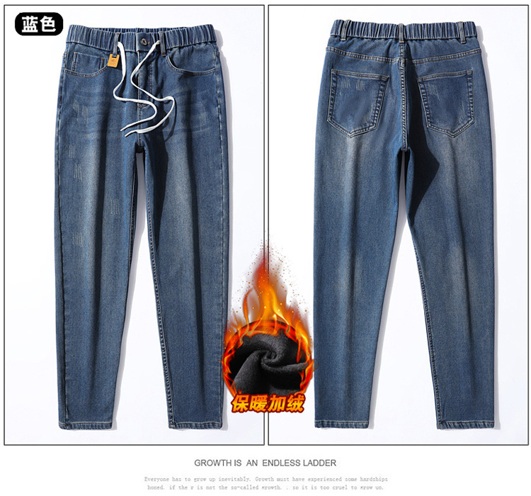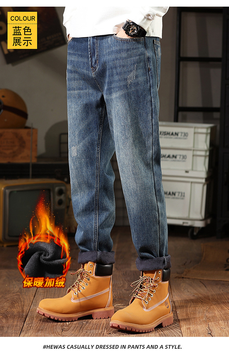 2023 겨울 높은 스트레치 기모 청바지 남성용 슬림 핏 스키니 플러스 사이즈 뚱뚱한 스트레치 팬츠 패션스토어 가기