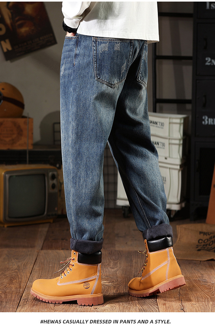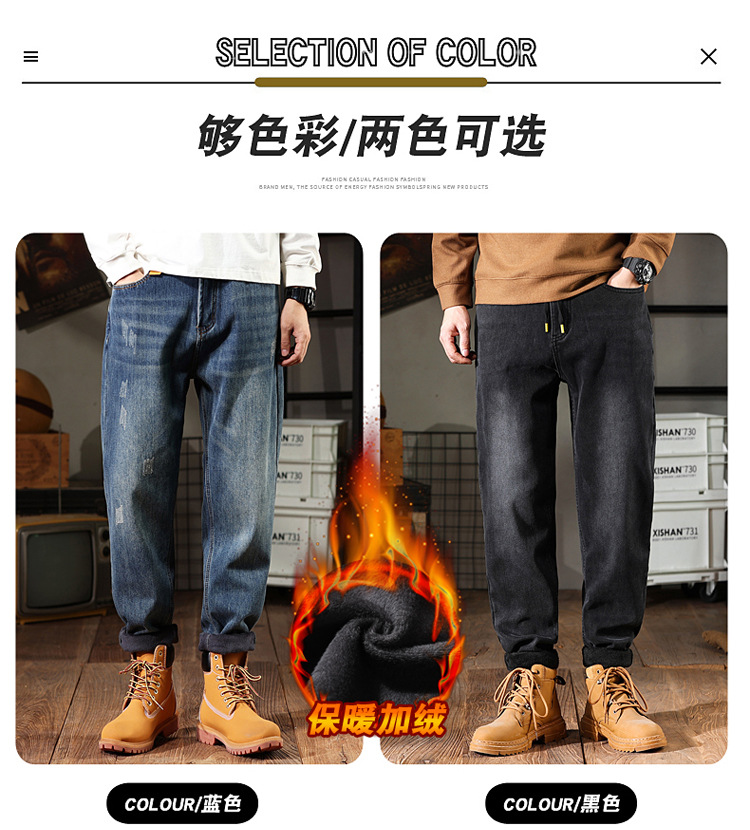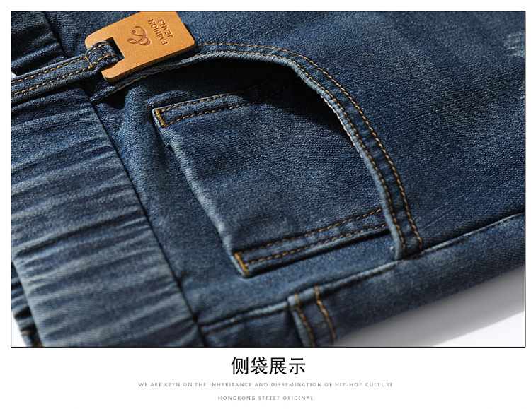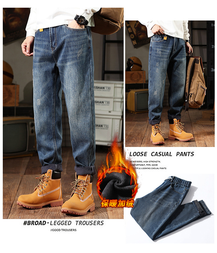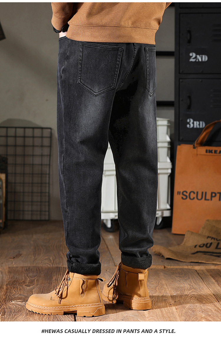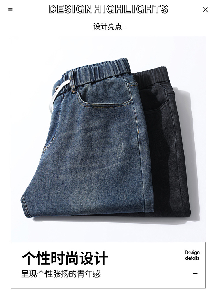 2023 겨울 높은 스트레치 기모 청바지 남성용 슬림 핏 스키니 플러스 사이즈 뚱뚱한 스트레치 팬츠 패션스토어 가기