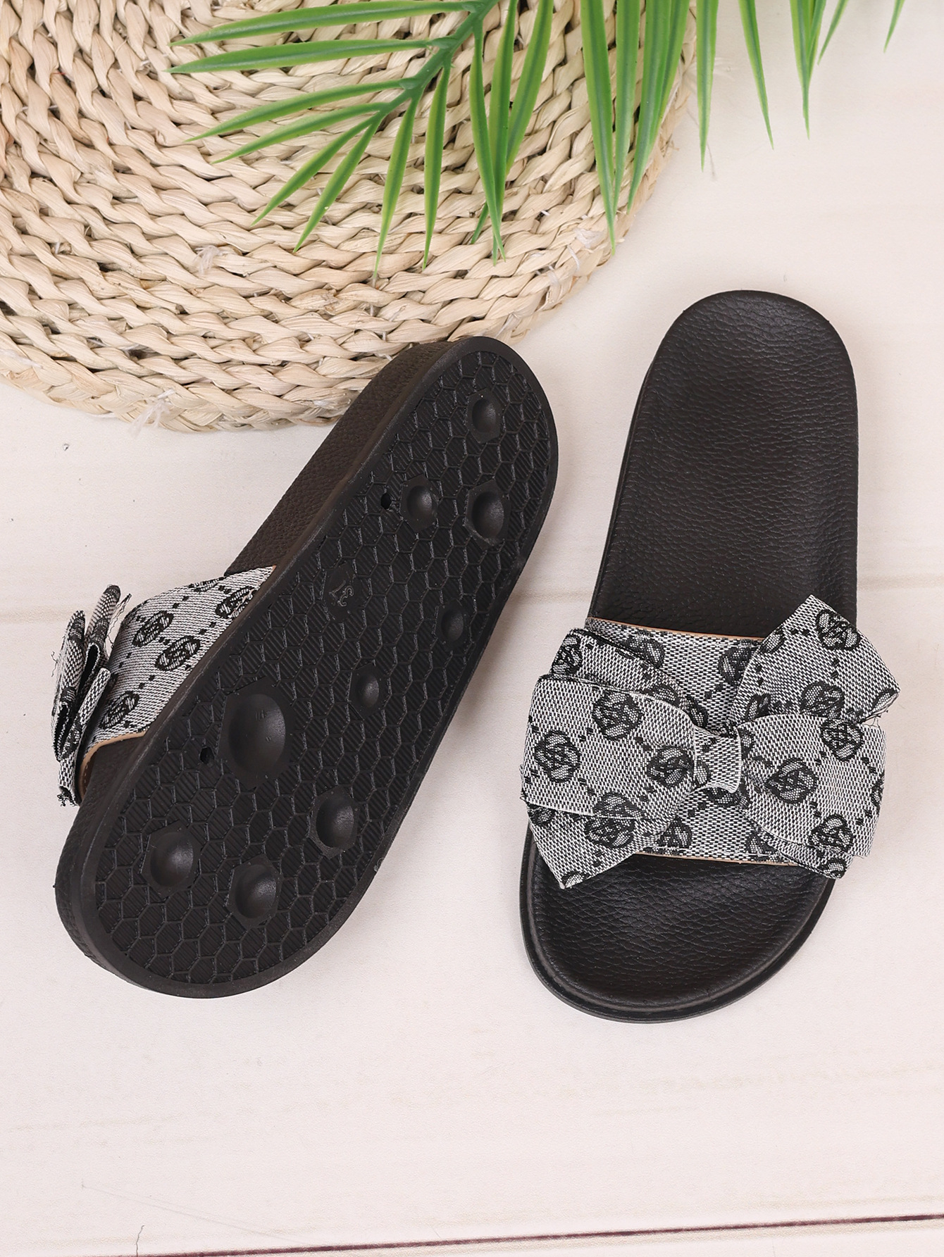 2024 크로스보더 플랫 슬리퍼, 유럽과 미국의 대형 사이즈 나비 프린트, 여성용 대외 무역 비치 샌들스토어 가기