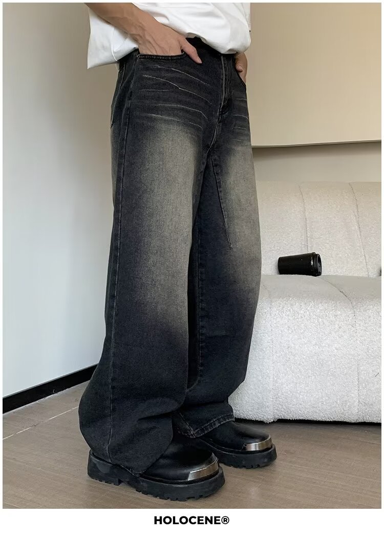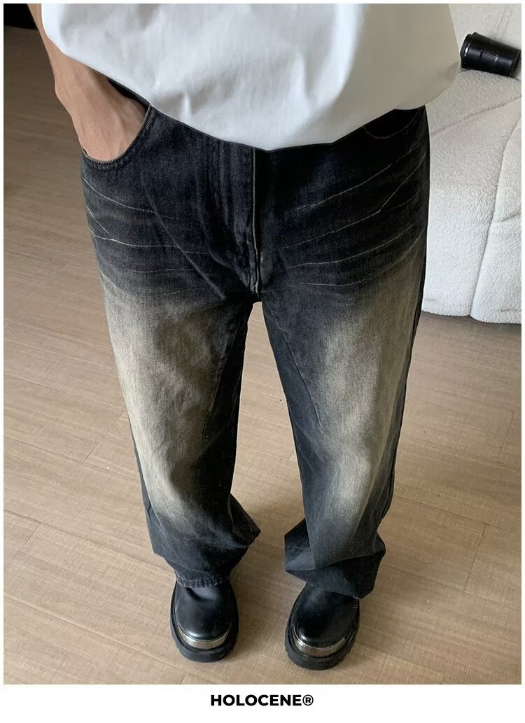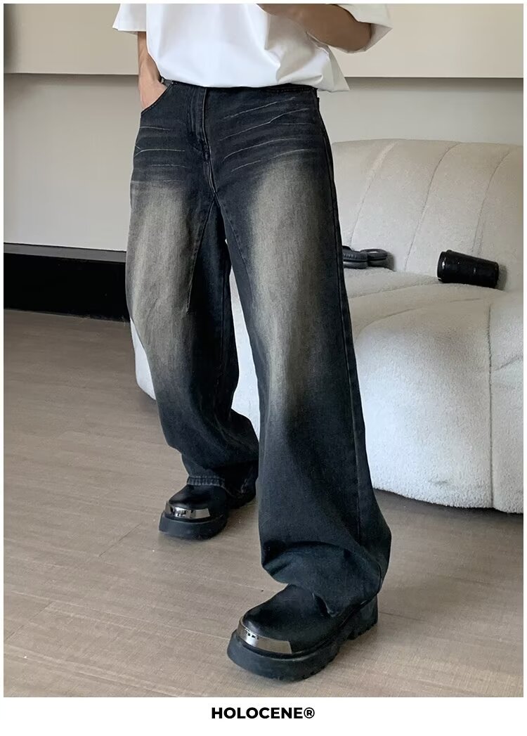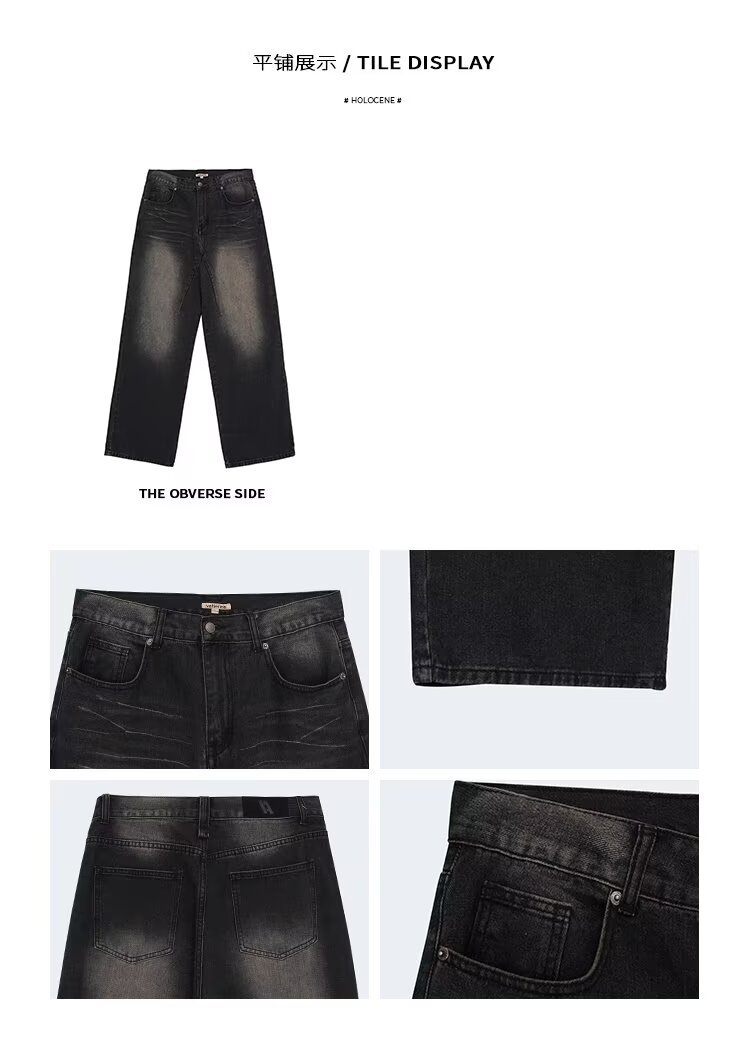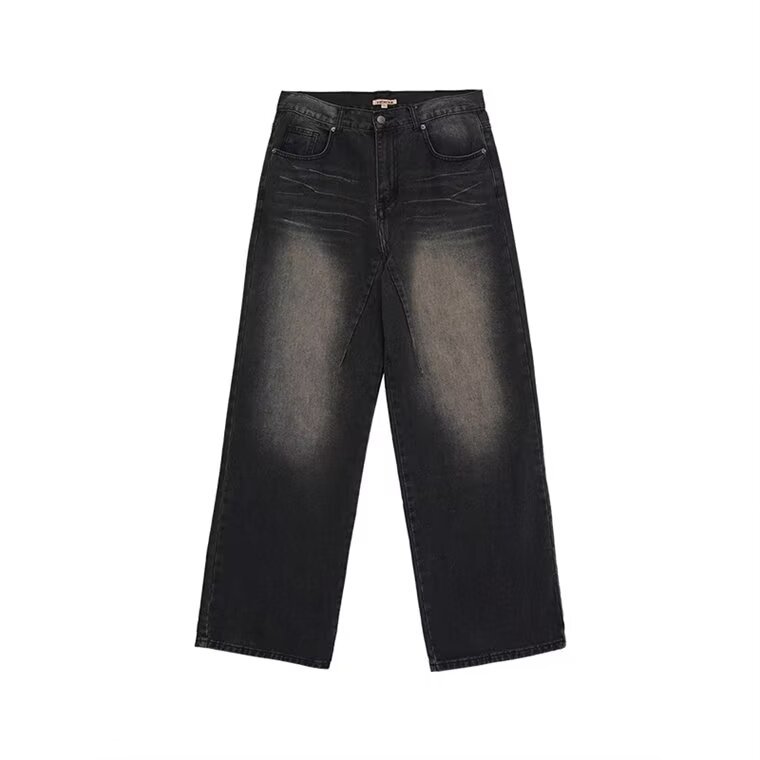 미국 패션 브랜드 빈티지 화이트 청바지 남성과 여성의 캐주얼 하이 스트리트 스트레이트 느슨한 넓은 다리 바지 패션스토어 가기