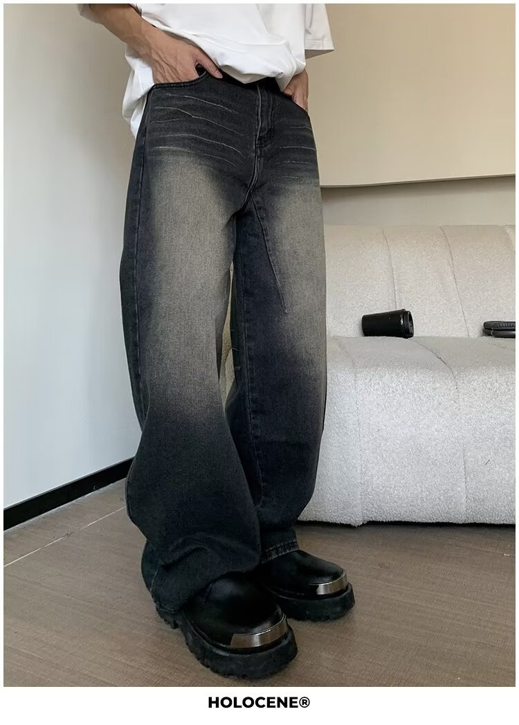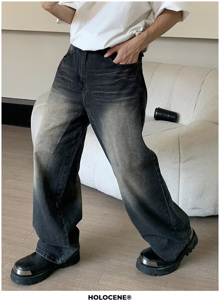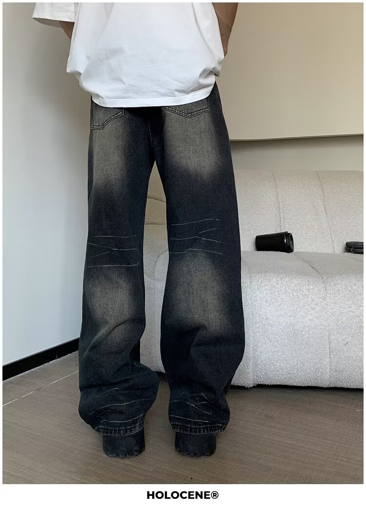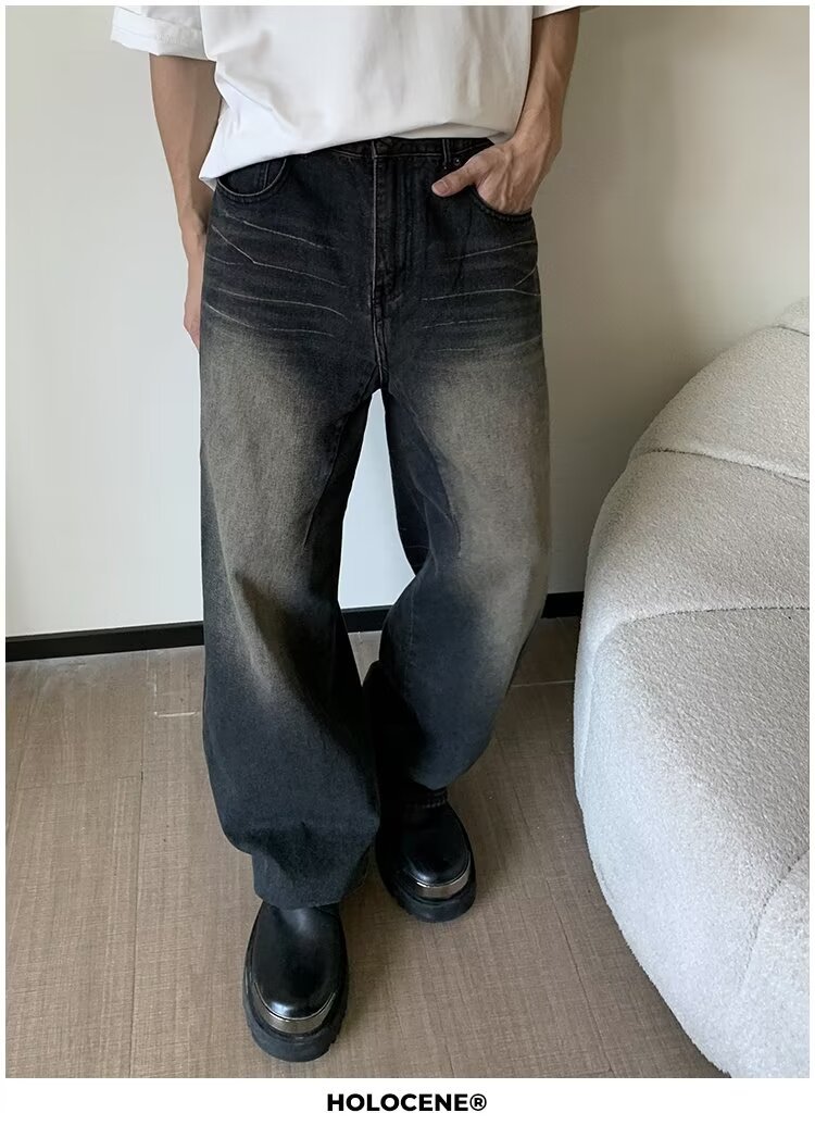 미국 패션 브랜드 빈티지 화이트 청바지 남성과 여성의 캐주얼 하이 스트리트 스트레이트 느슨한 넓은 다리 바지 패션스토어 가기