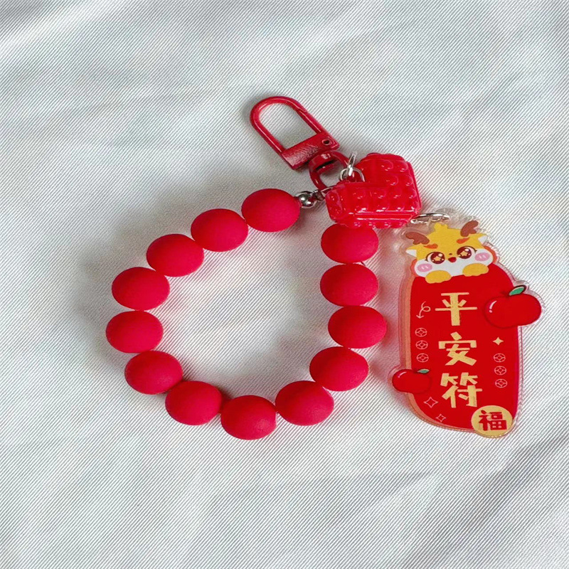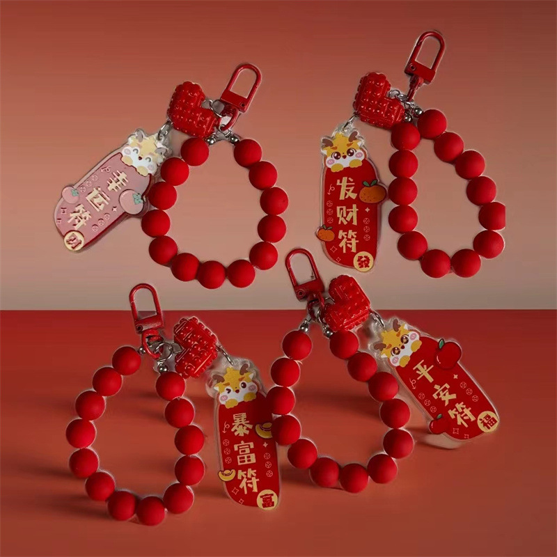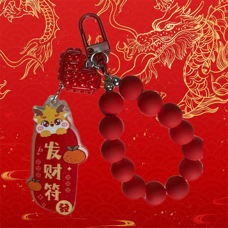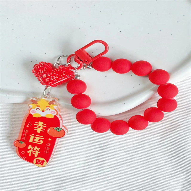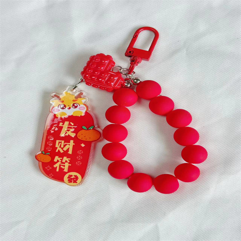 새해 귀여운 드래곤 매달려 키 체인 펜던트 개인화 된 단색 구슬 체인 액세서리 이어폰 가방 장식
