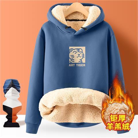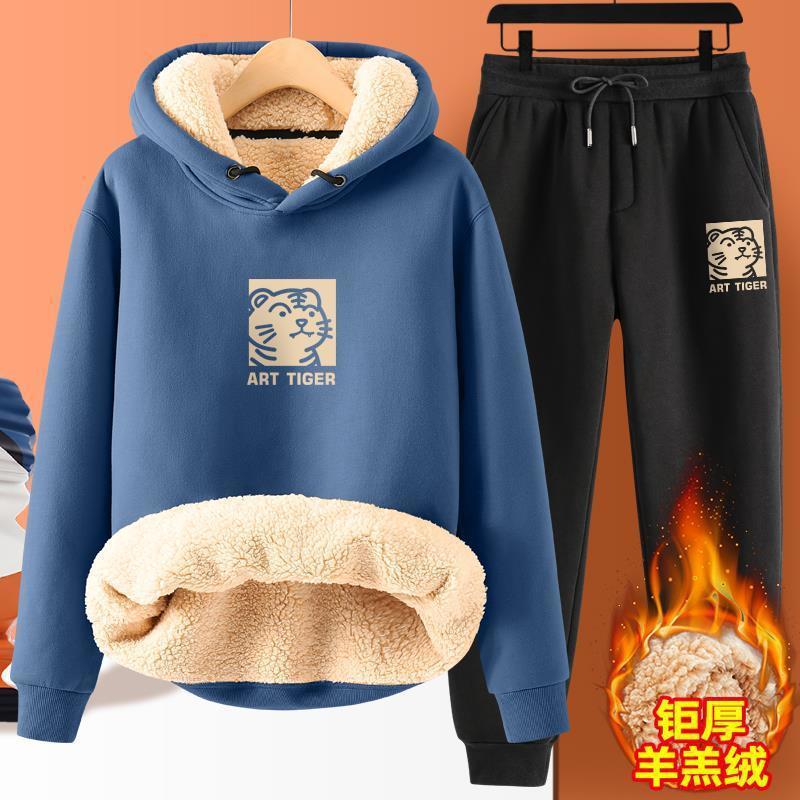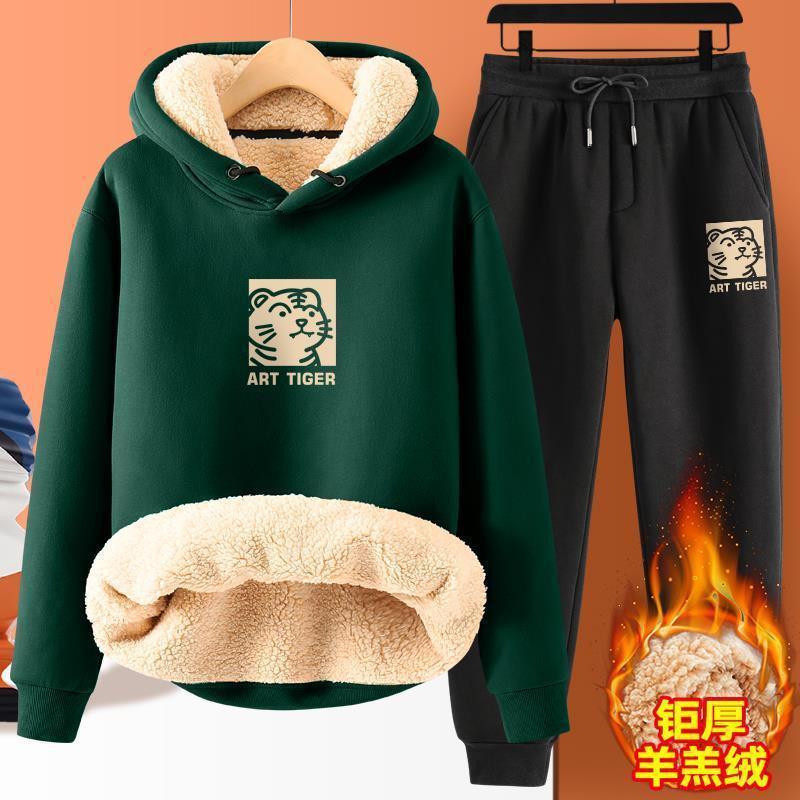 가을과 겨울 양고기 벨벳 스웨트 셔츠 남성용 후드 벨벳 두꺼운 따뜻한 학생 레저 느슨한 스포츠 세트 12스토어 가기