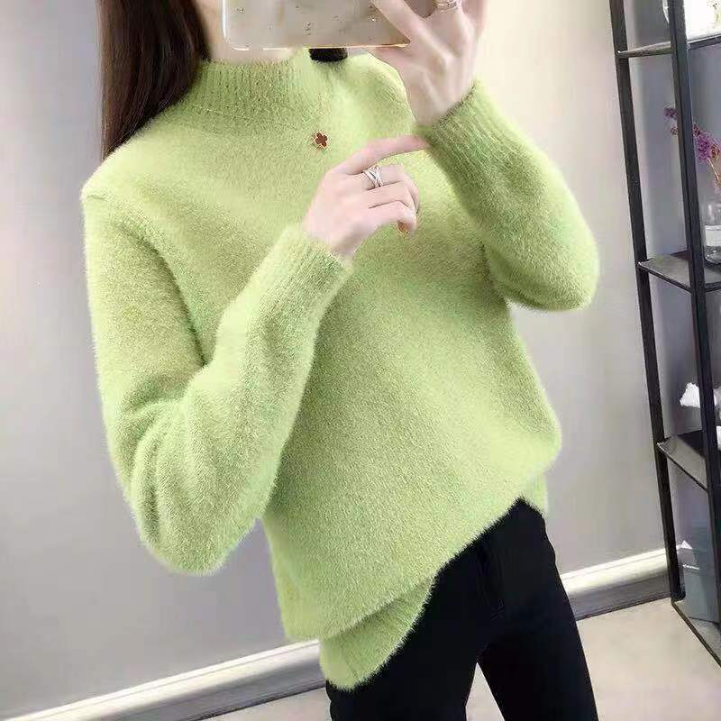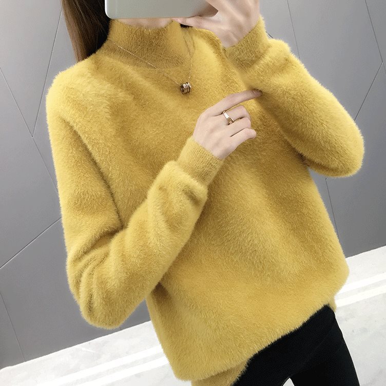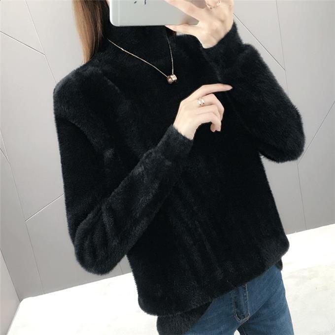 세련된 가을과 겨울 새로운 하프 터틀넥 두꺼운 바닥 셔츠 가짜 밍크 벨벳 풀오버 요정 스웨터 여성 서양식 탑스토어 가기