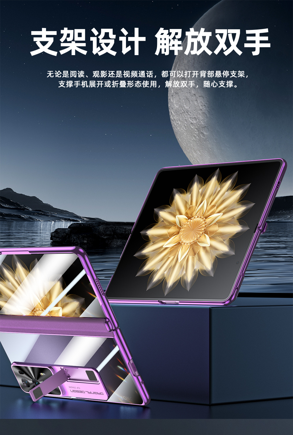 적용 명예 MagicVS2 휴대 전화 쉘 필름 통합 전기 도금 투명 센터 샤프트 모든 포함 힌지 보호 브래킷 쉘 커버