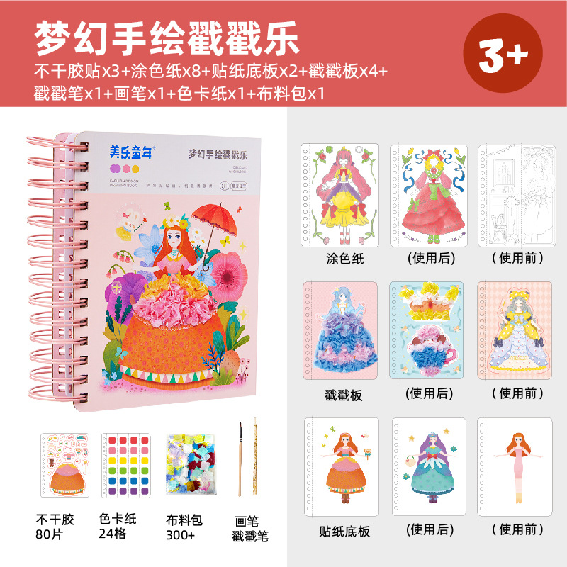 Meile 어린이 공주 원피스 업 스티커 책 스티커 소녀의 수제 DIY 만화 찌르기 색칠하기 장난감스토어 가기