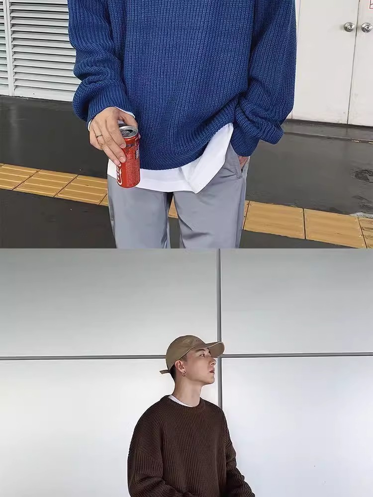 세련된 스트라이프 콘트라스트 컬러 라운드 넥 스웨터 남성 2020 가을과 겨울 새로운 캐주얼 올 매치 스웨터 탑 패션스토어 가기