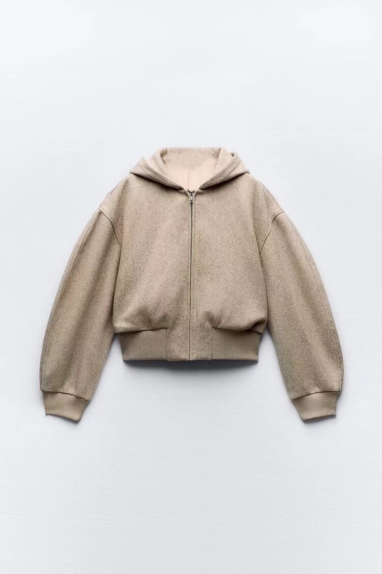 UC & ZA 국경 간 AliExpress 아마존 유럽 및 미국 여성 소프트 쇼트 에비에이터 루즈 후드 재킷스토어 가기