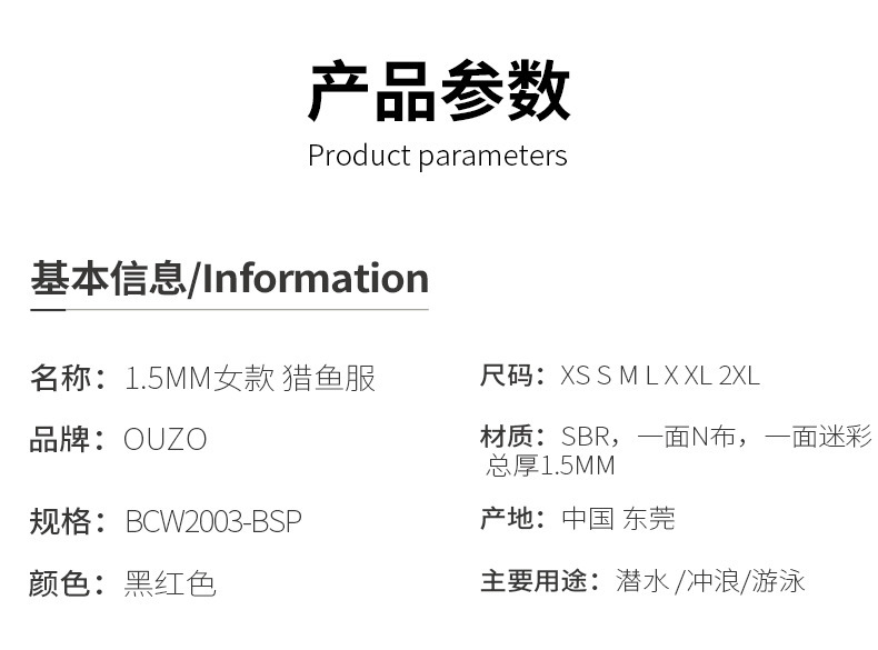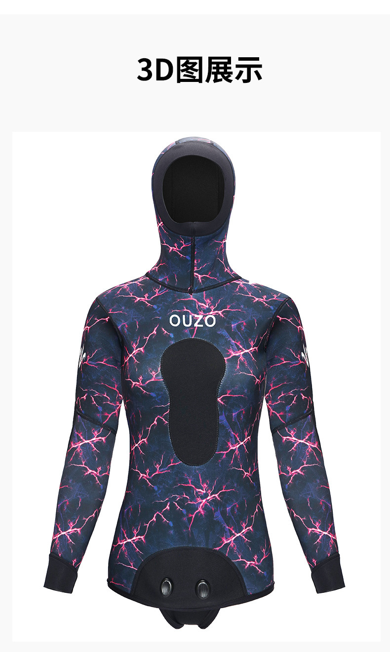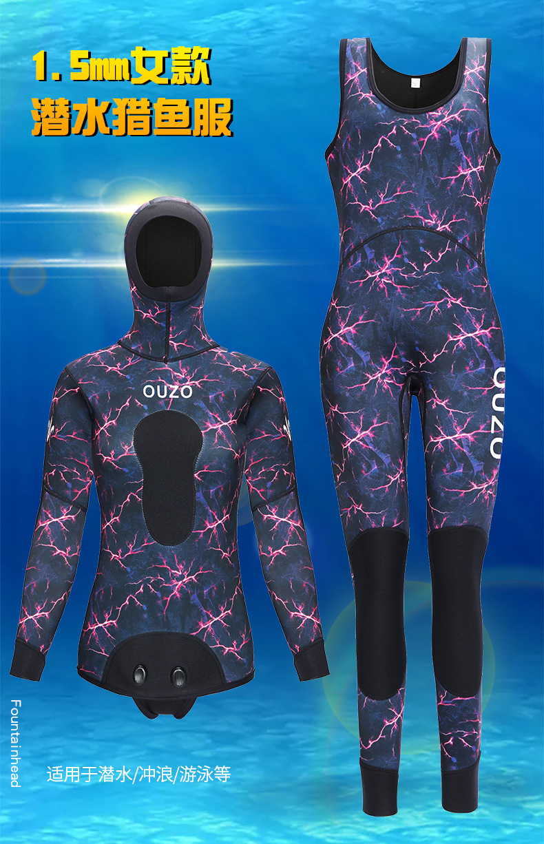 1.5mm潜水服女分体渔猎服潜水衣 全套OUZO防晒保暖迷彩浮潜猎鱼服