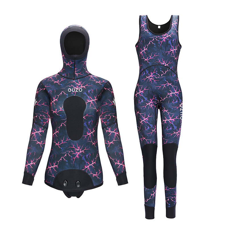 1.5mm 잠수복 여성용 스플릿 낚시 및 사냥 잠수복 OUZO 자외선 차단제 및 따뜻한 위장 스노클링 및 낚시 잠수복 전체 세트