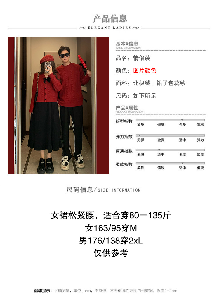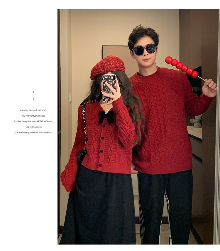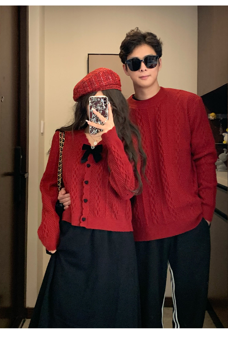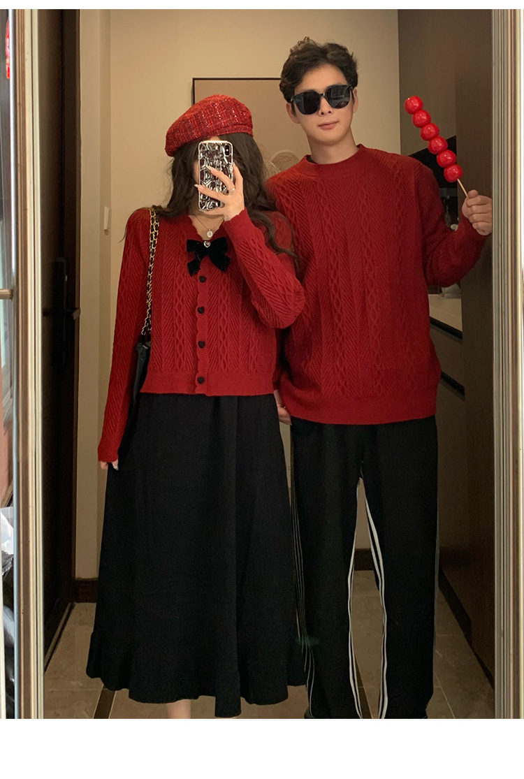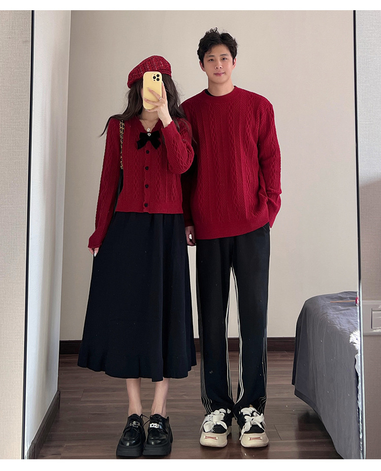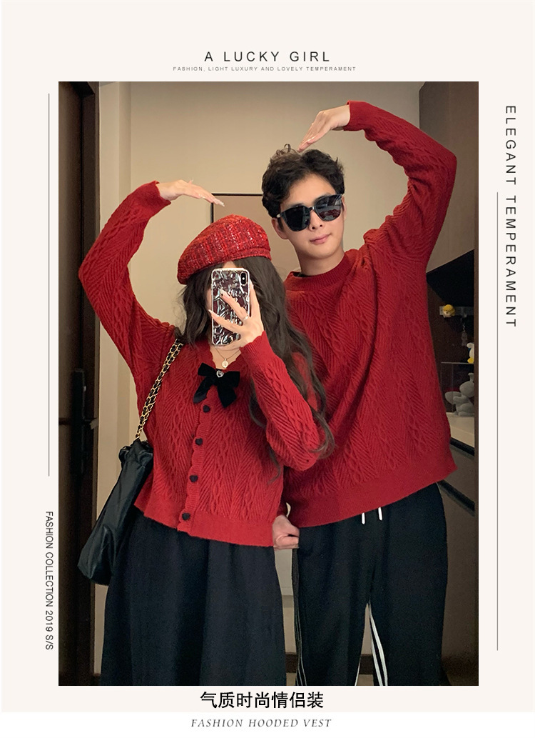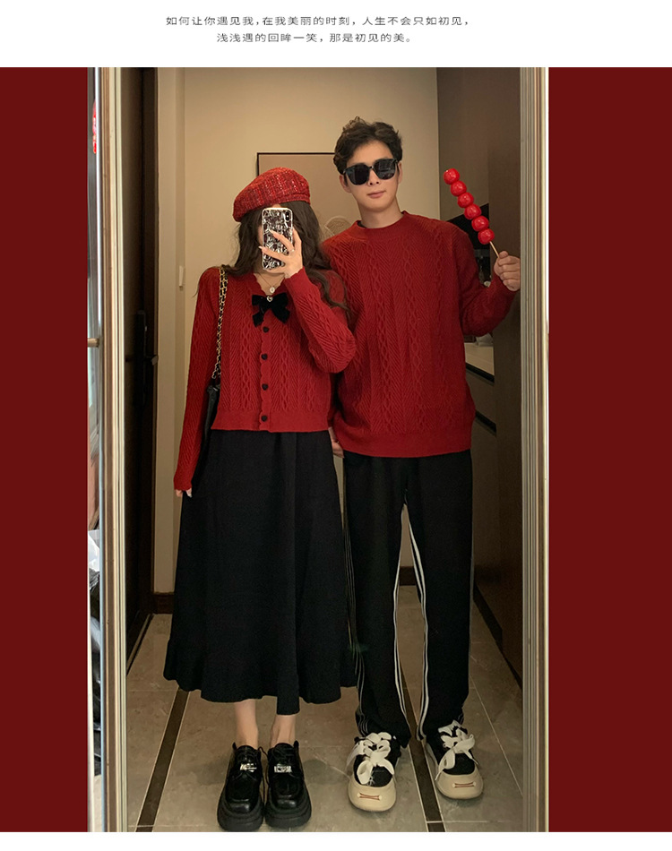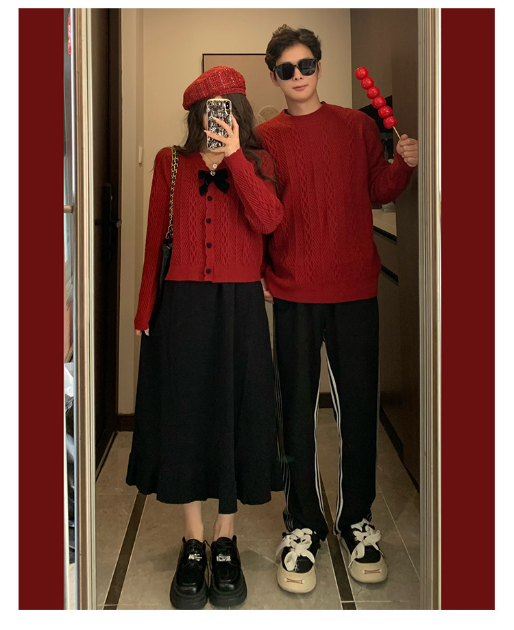2023 가을과 겨울 생활 커플 레드 레이디 활 니트 스웨터 카디건 세트 스커트를 착용스토어 가기