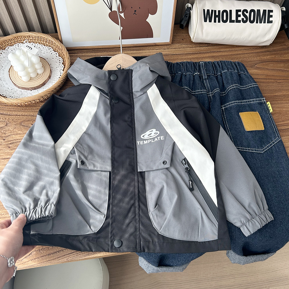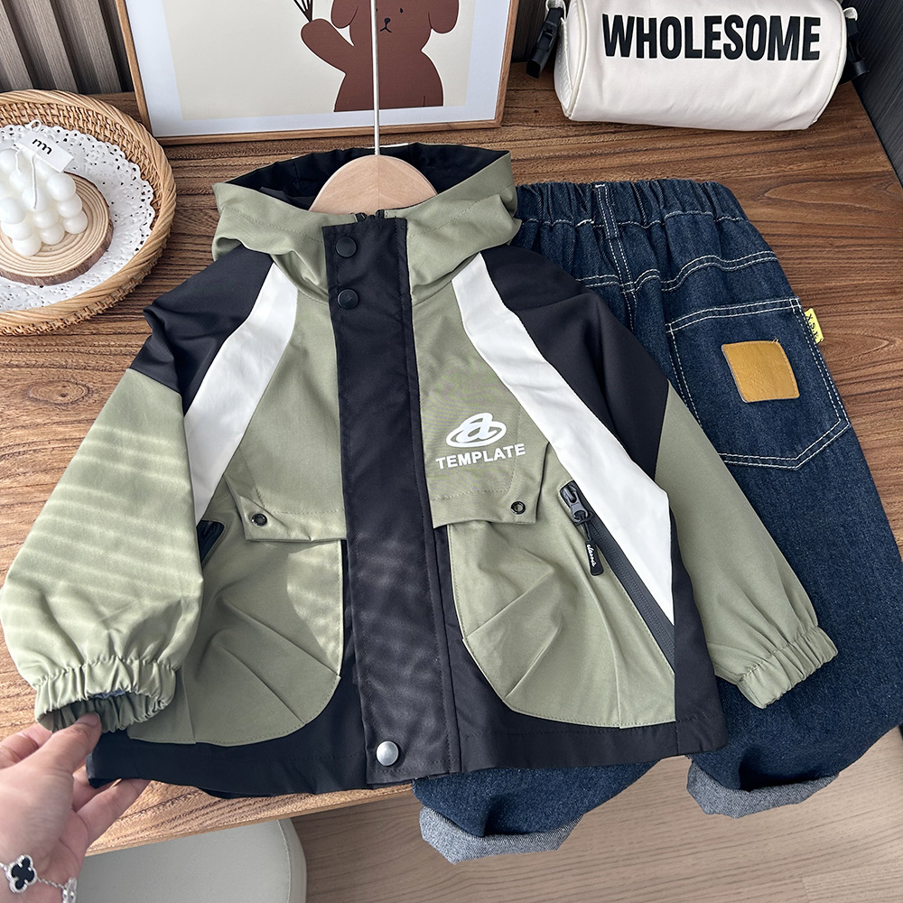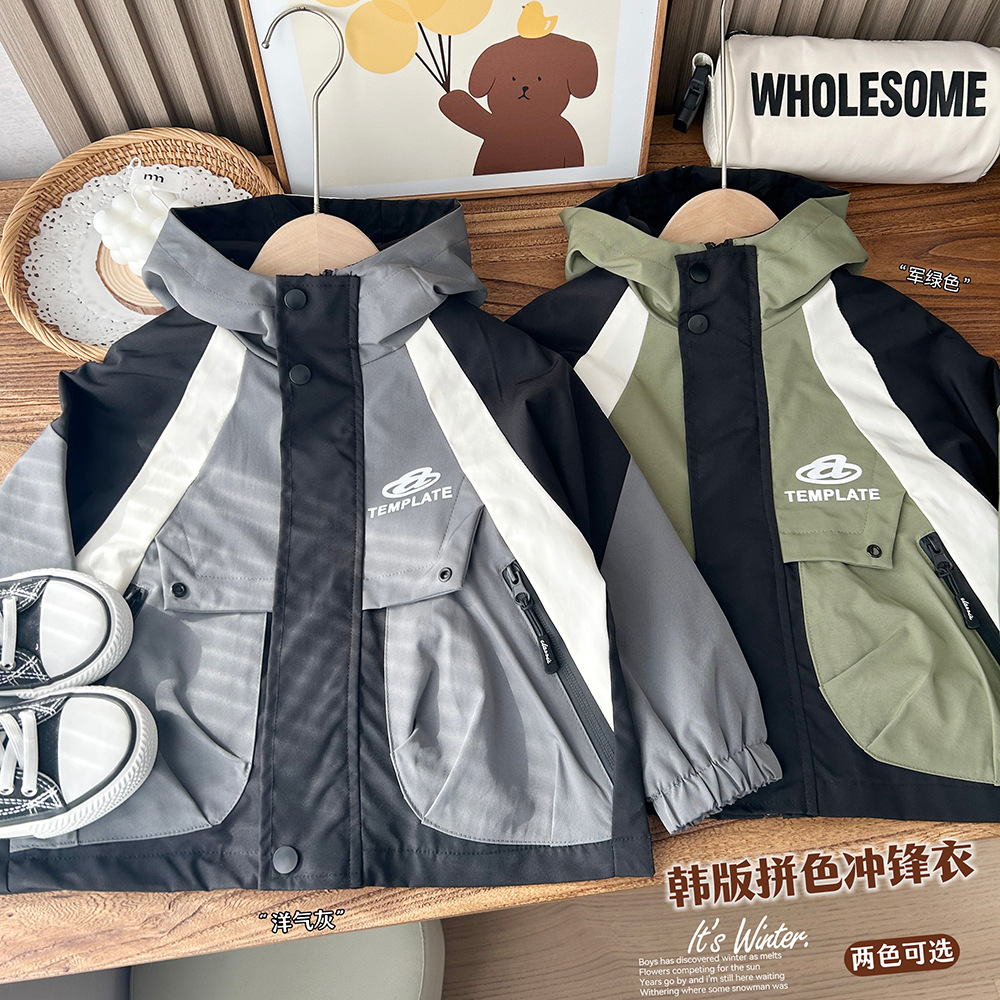 2024 년 봄 아동복 소년과 어린이 컬러 매칭 한국 버전의 큰 어린이 3 대 1 재킷 재킷 재킷 도매스토어 가기